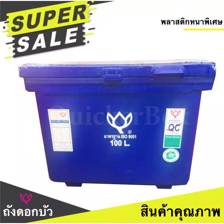 ถังน้ำแข็ง ตราดอกบัว ขนาด 25-300 ลิตร สีฟ้า