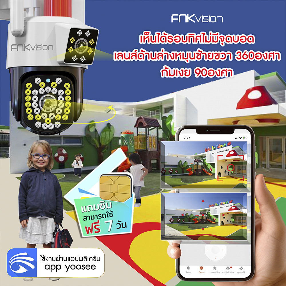 FNKvision YOOSEE กล้องใส่ซิม4G กล้องวงจรปิดเลนส์คู่ Full HD 8MP กล้องกันน้ำ กล้องวงจรปิดเลนส์คู่ 360องศา ซิมเน็ตใช้งานฟร