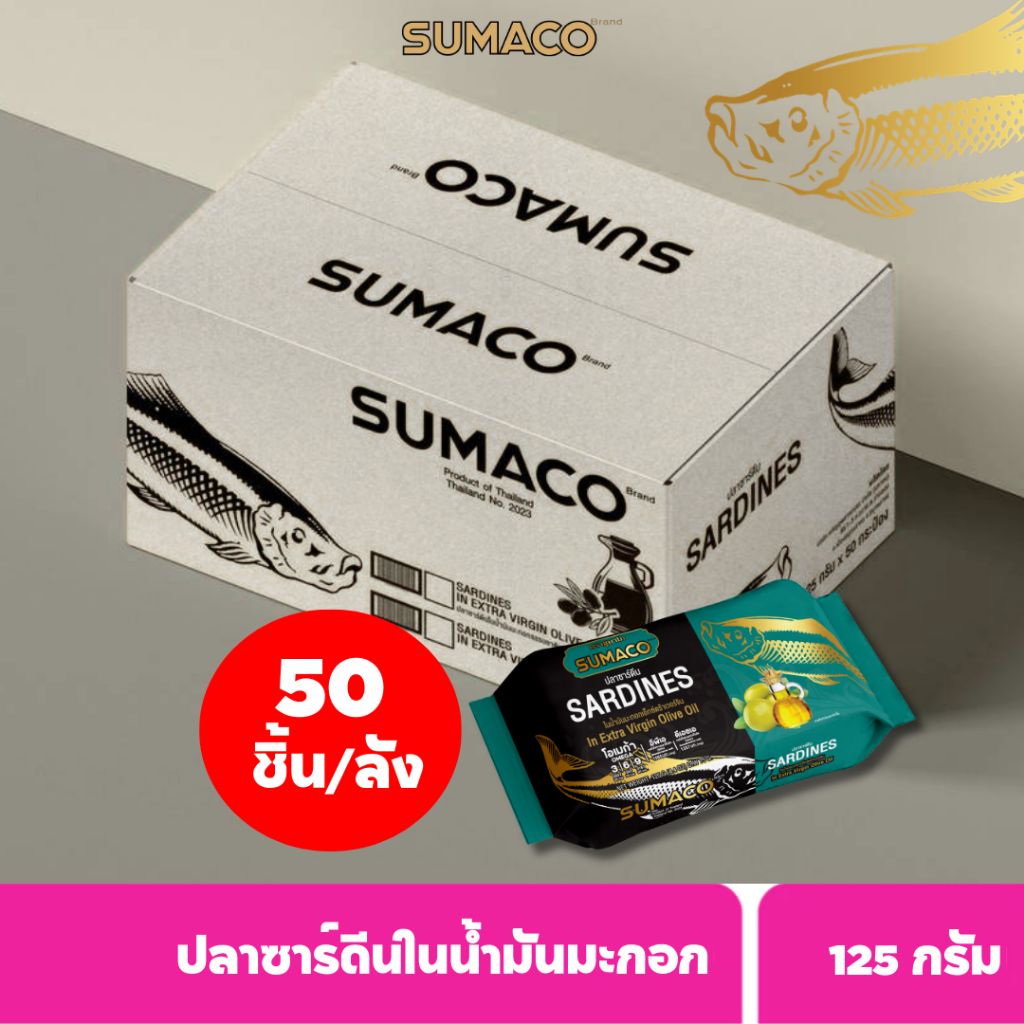 SUMACO ปลาซาร์ดีนในน้ำมันมะกอก เกรดพรีเมียม 125g | ปลาซาร์ดีนเนื้อแน่น หอมน้ำมันมะกอก อร่อยกลมกล่อม