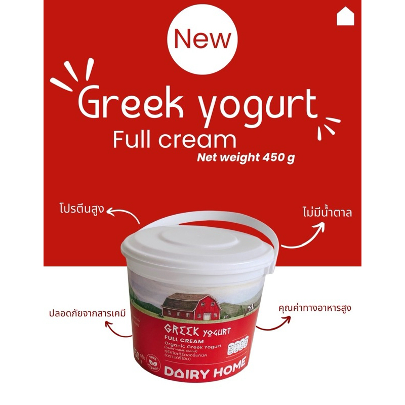 Greek yogurt full cream กรีกโยเกิร์ตออร์แกนิค ตราแดรี่โฮม 450 กรัม ****จัดส่งเฉพาะในกรุงเทพ*****