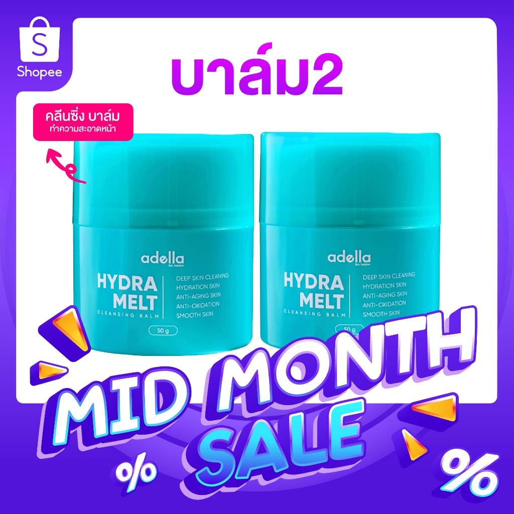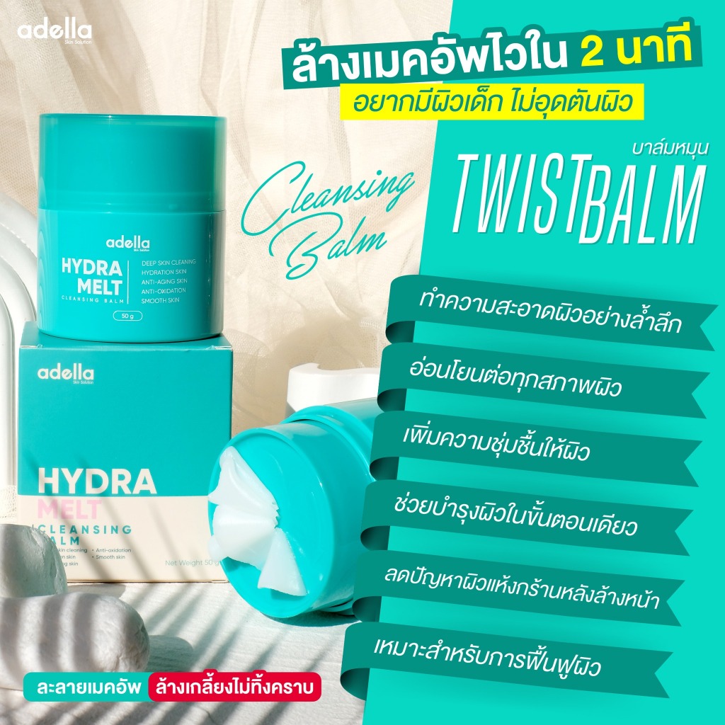 [คลีนซิ่งบาล์ม] บาล์ม 2 กระปุก Adella Hydra Melt Cleansing Balm บาล์มหมุน