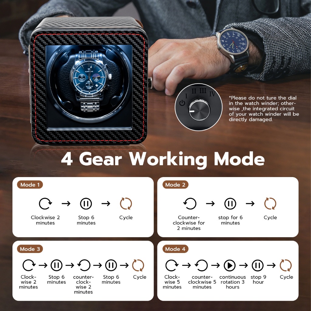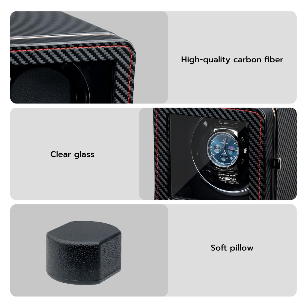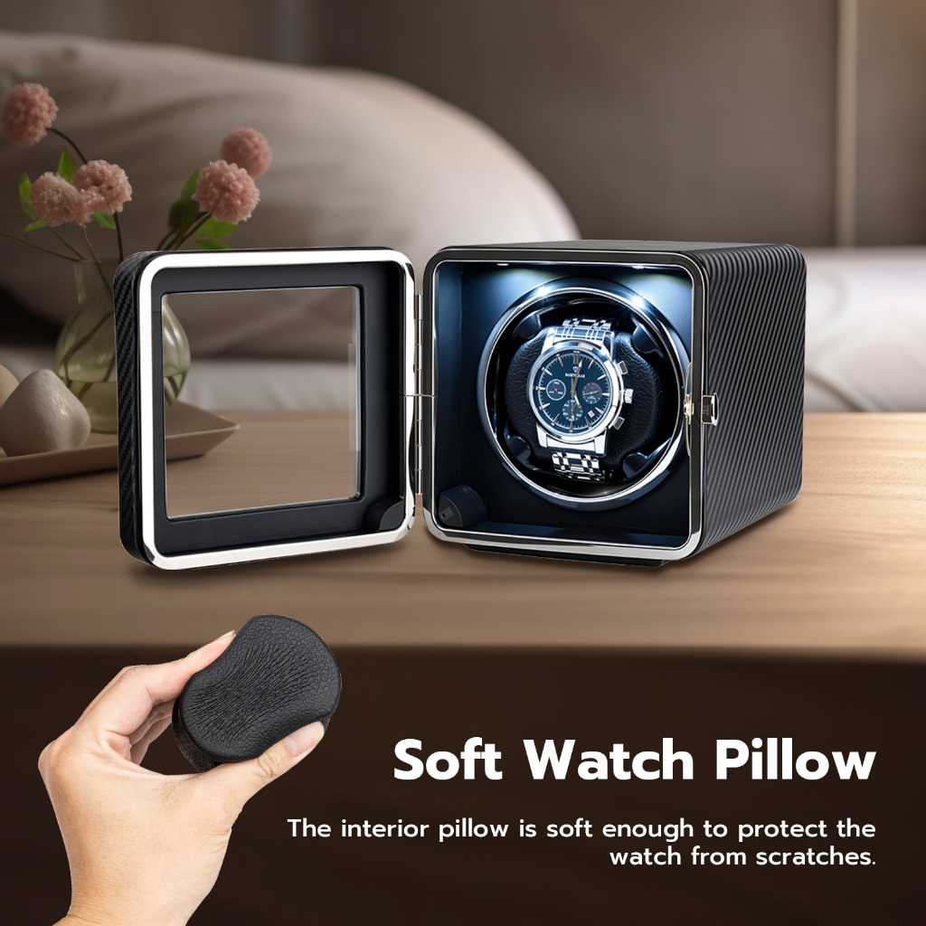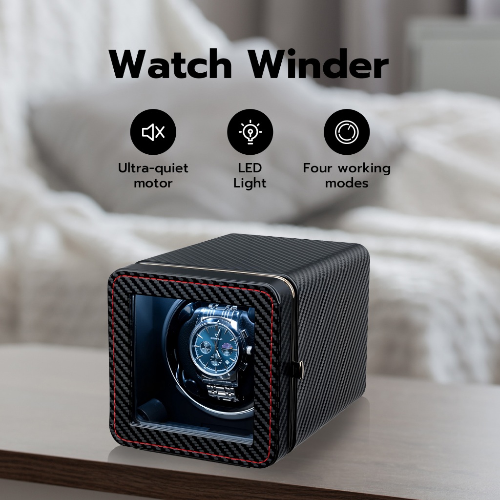 【การจัดส่งในประเทศไทย】ที่เก็บนาฬิกาอัตโนมัติแบบเดี่ยวหนัง PU สี่เหลี่ยมพร้อมไฟ LED