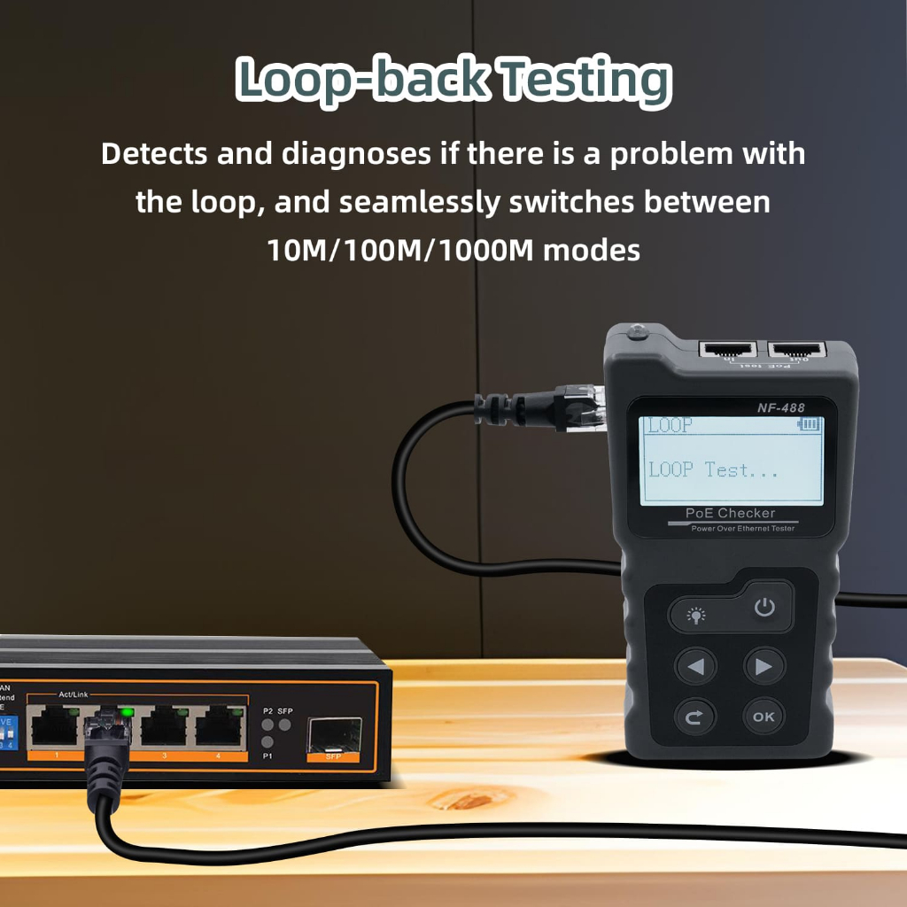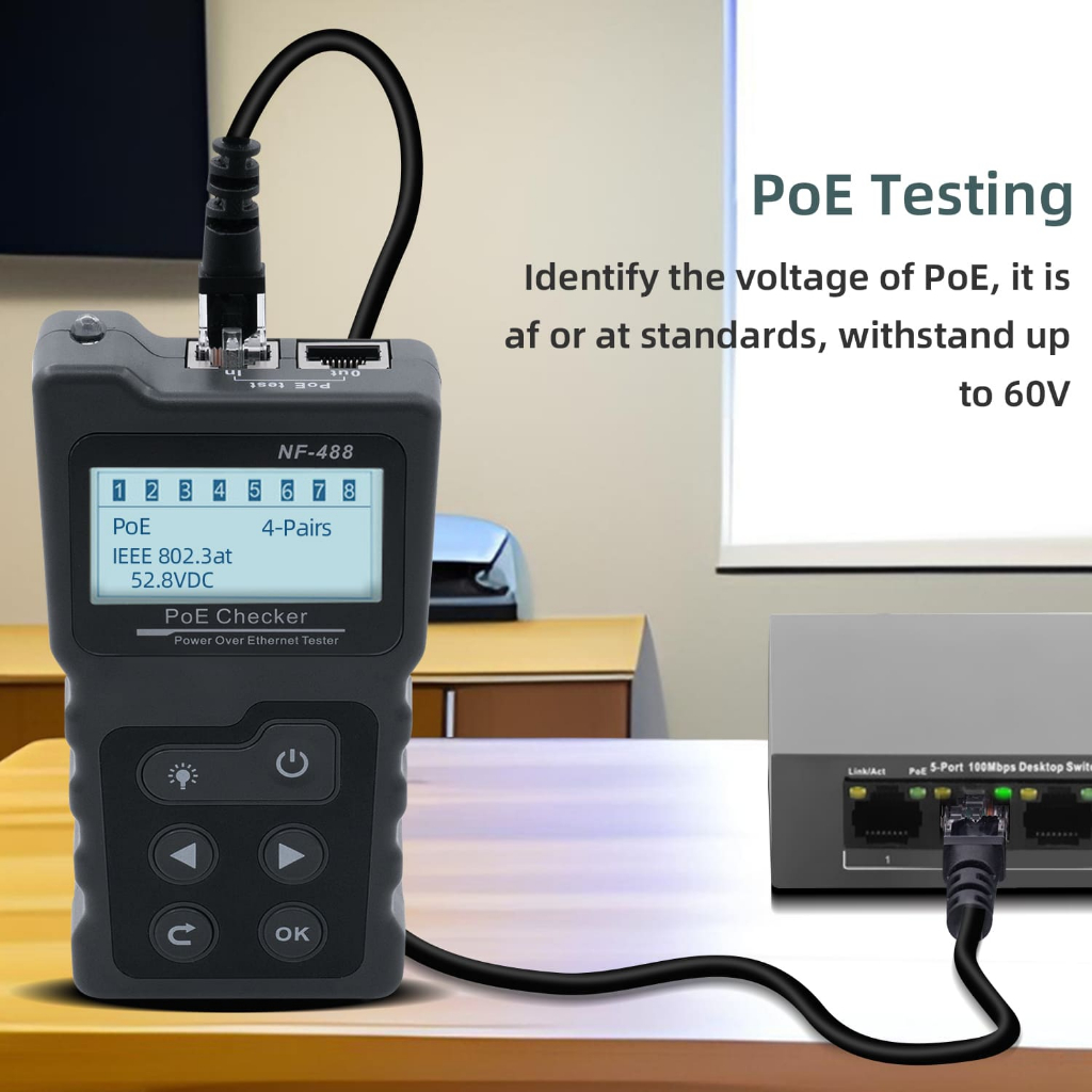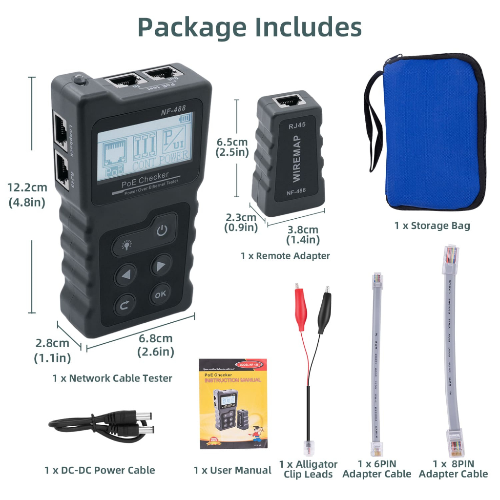 ตัวทดสอบสายเคเบิลเครือข่าย RJ45 พร้อมกระเป๋าเก็บสำหรับ CAT5e/CAT6/CAT6a