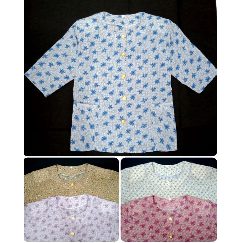 เสื้อคนแก่ คอกลม S M L XL ผ้าชีฟอง เสื้อแม่บ้าน เสื้อผู้สูงอายุ