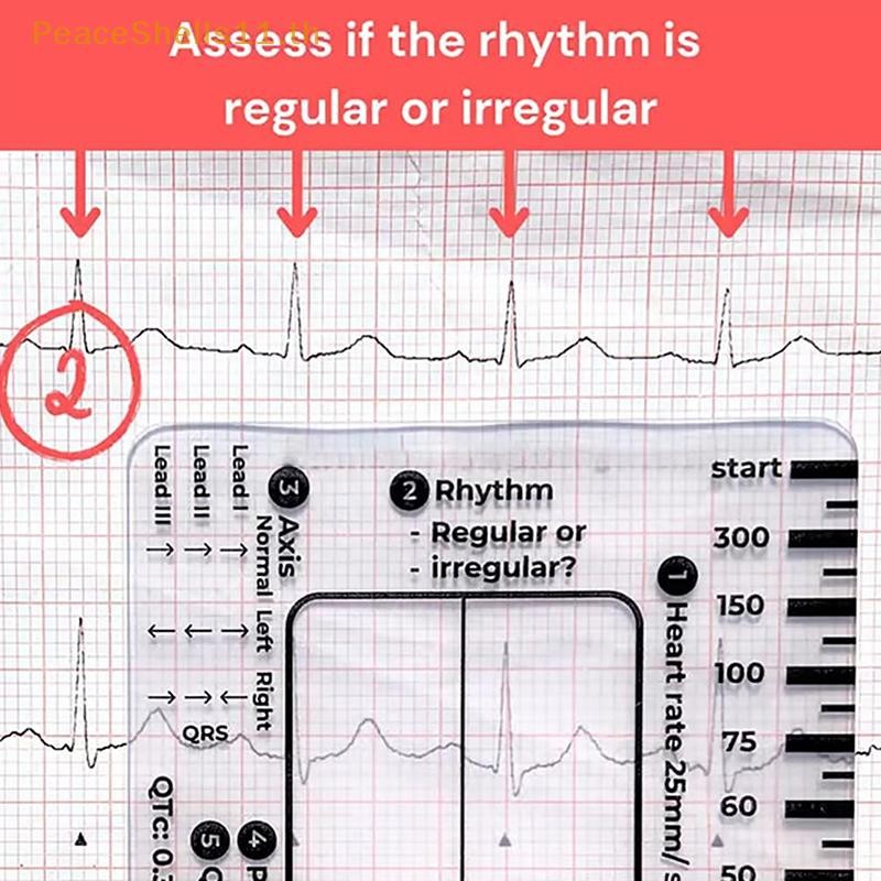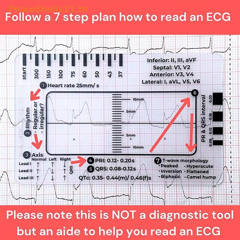 Peaceshells ECG 7 Step Ruler, ECGไม้บรรทัดพลาสติกเครื่องมือวัด, ECG 7 Step ไม้บรรทัดสําหรับ ECG/EKG Interpretation, เครื่องมือวัดคาลิปเปอร์ EKG โปร่งใส, ถือง่าย, ตาม