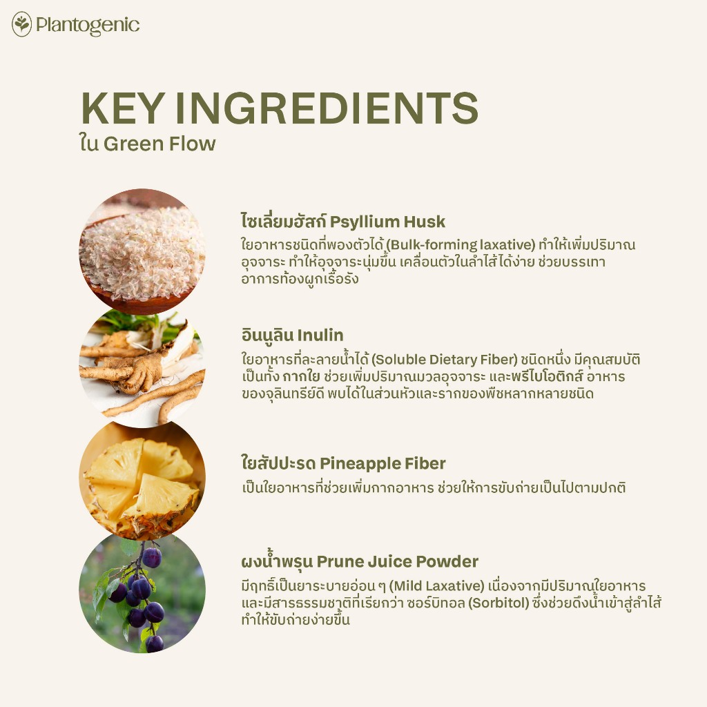 Plantogenic - Green Flow ไฟเบอร์ปัดกวาดสิ่งตกค้าง ช่วยการขับถ่าย เพิ่มมวลอุจจาระ ไม่ปวดบิด ไม่เติมน้ำตาล (Plant-based)