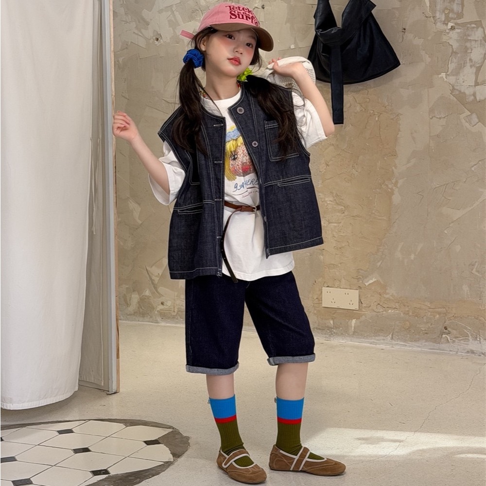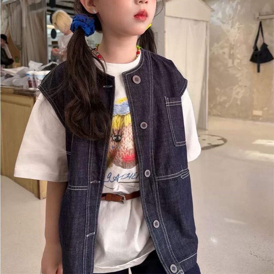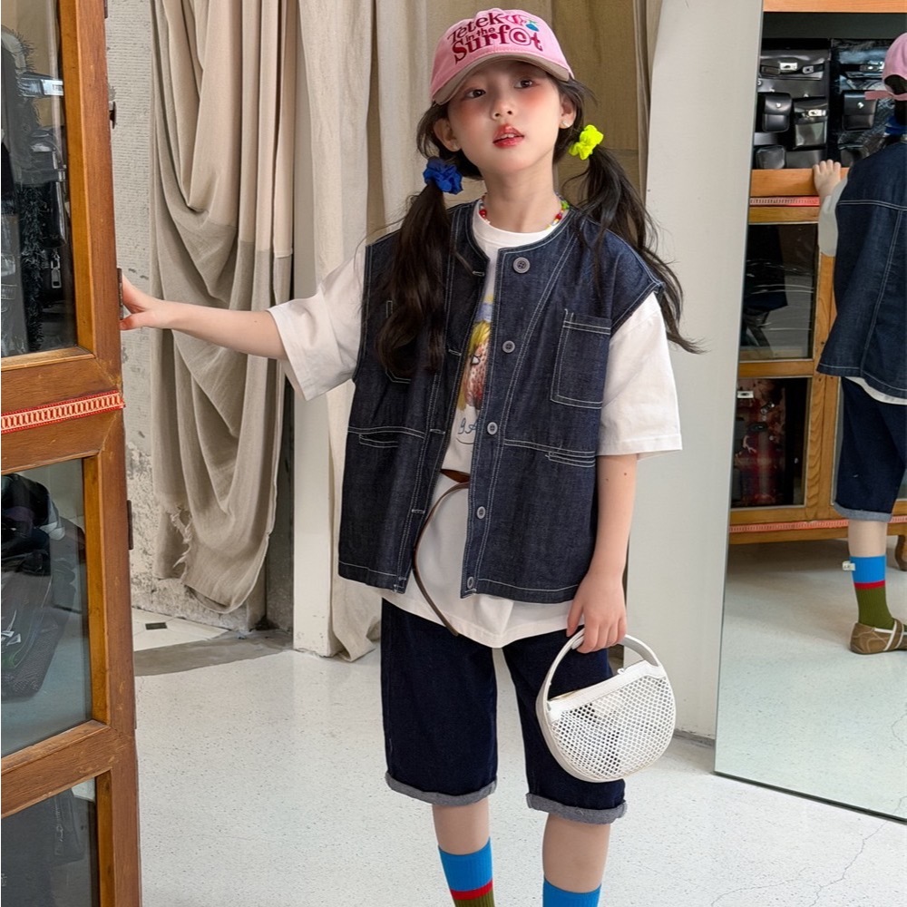PRETTY BABY เสื้อกั๊กเด็ก เสื้อกั๊กผ้ายีนส์ แฟชั่นเด็ก (1985.1)