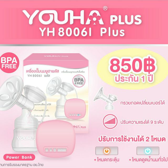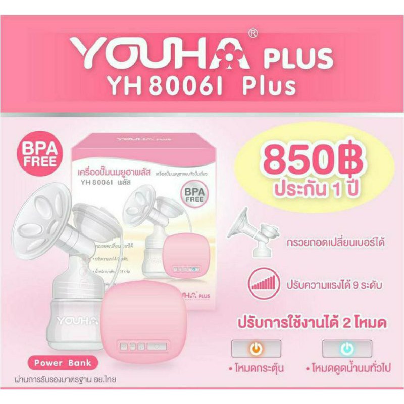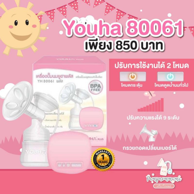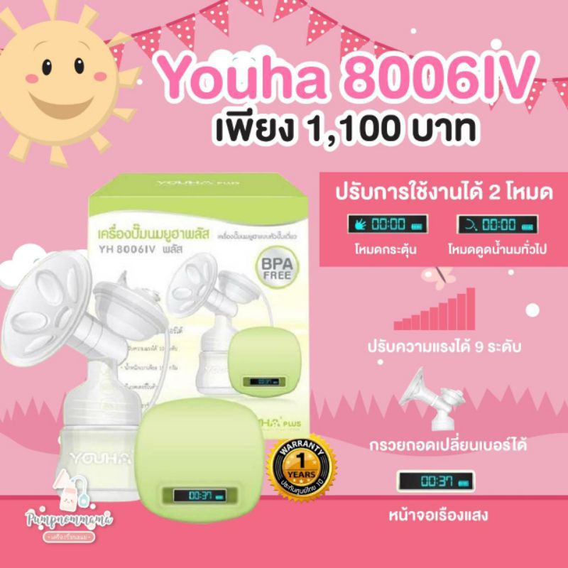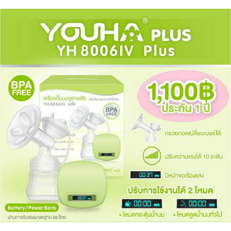 Youha เครื่องปั๊มนมยูฮา ปั๊มเดี่ยว ประกัน 1 ปี รุ่น 8006i+