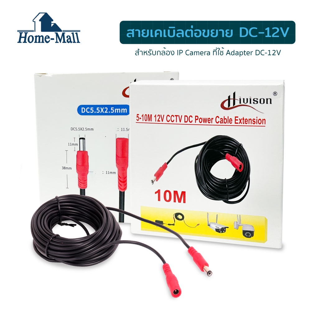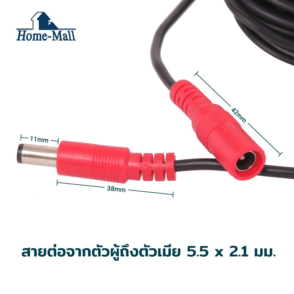 HOME-MALL สายไฟต่ออะแดปเตอร์ กล้องวงจรปิดสายชาร์จต่อขยายDC12V5mและ10mกล้องวงจรปิด สายไฟต่ออะแดปเตอร์