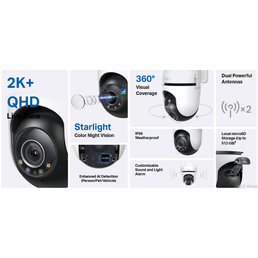 TP-Link Tapo C520WS ฟรีคลาวด์ กล้องวงจรปิดไร้สาย 4MP 2K+ QHD Starlight Night Vision ให้ภาพสีได้แม้แสงน้อย Smart AI