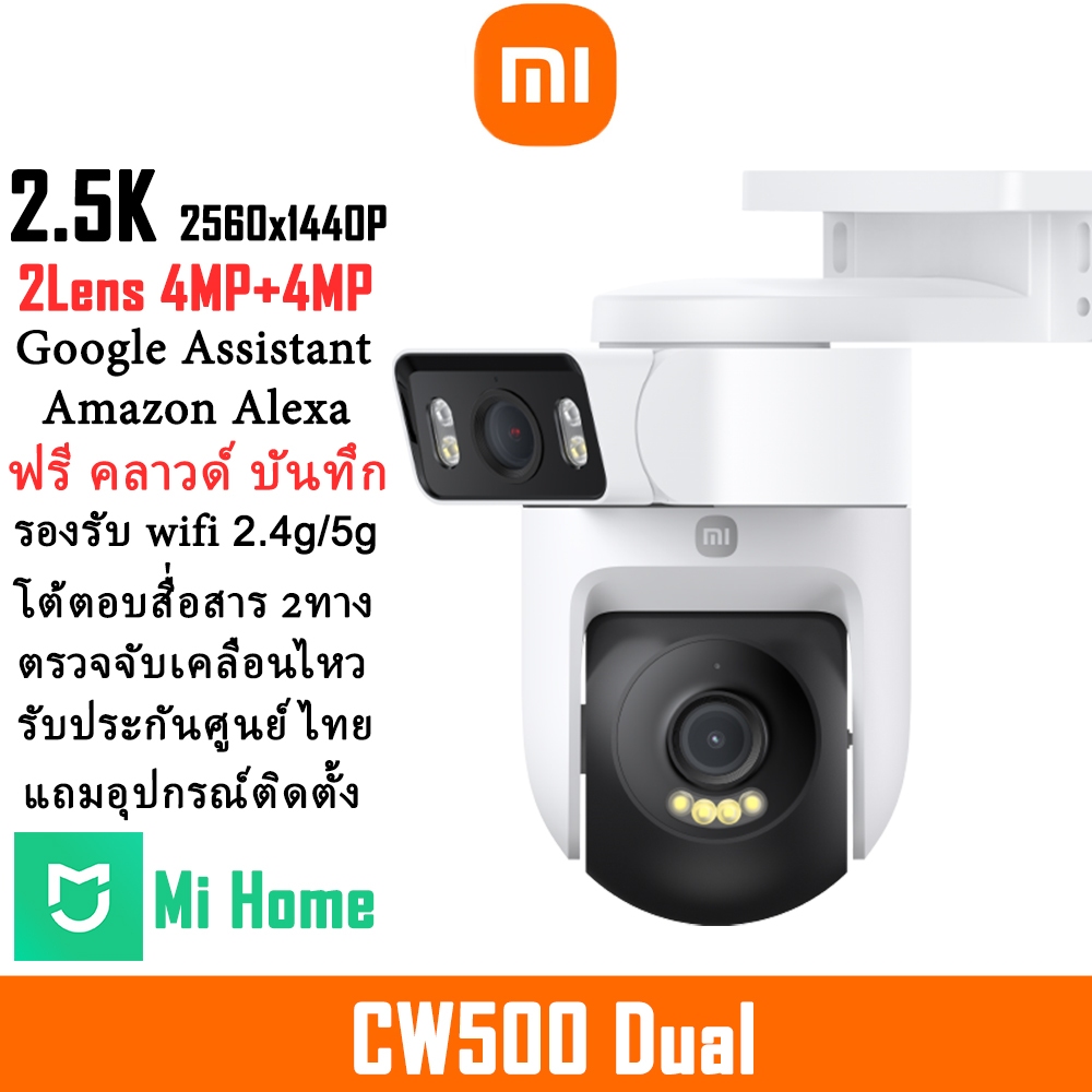 Xiaomi Smart Camera CW500 Dual 2.5K 4MP+4MP ฟรีคลาวด์ ai Google Assistant Voice Control สั่งด้วยเสียง กลางคืนภาพเป็นสี