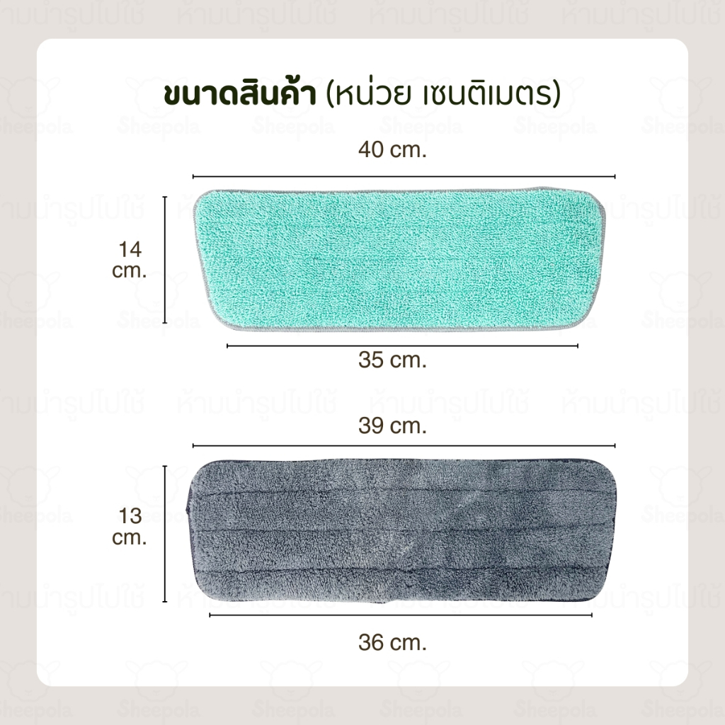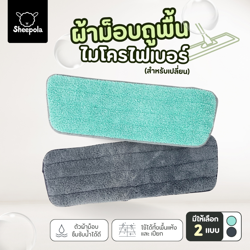 Sheepola ผ้าม็อบไมโครไฟเบอร์ (สำหรับไม้ถูแบบรีดน้ำ) ขนาด37ซม. ถูพื้น ดันฝุ่น ซับน้ำได้ดี ถอดซักได้