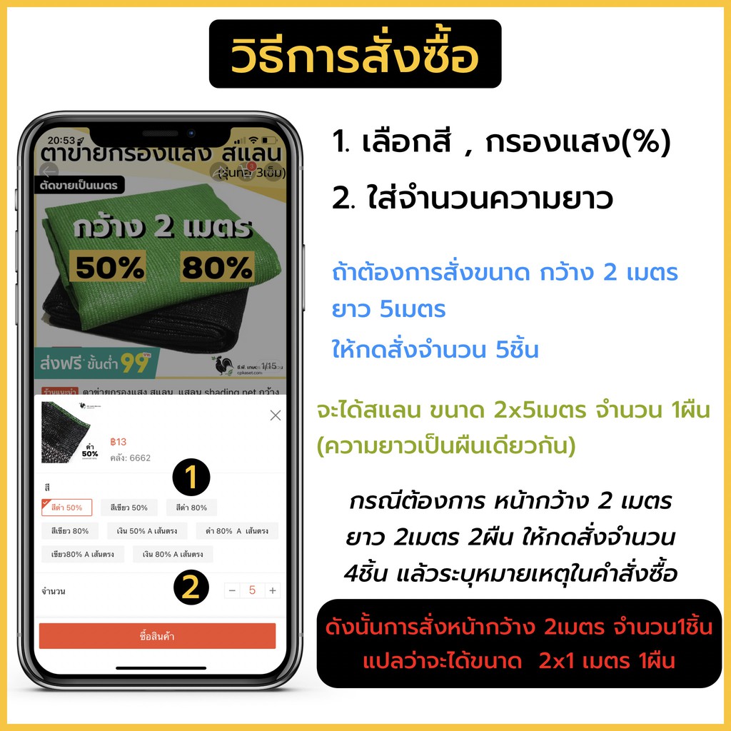 ตาข่ายกรองแสง สีดำ เขียว เงิน ขาว สแลน แสลน shading net กว้าง 2เมตร 50%,60%,80%