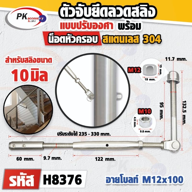อุปกรณ์ยึดลวดสลิงสำหรับทำราวบันได แบบปรับองศาได้ สามารถปรับสลิงได้ เป็นแบบยึดเสา สแตนเลส 304 ราคาต่อชิ้น