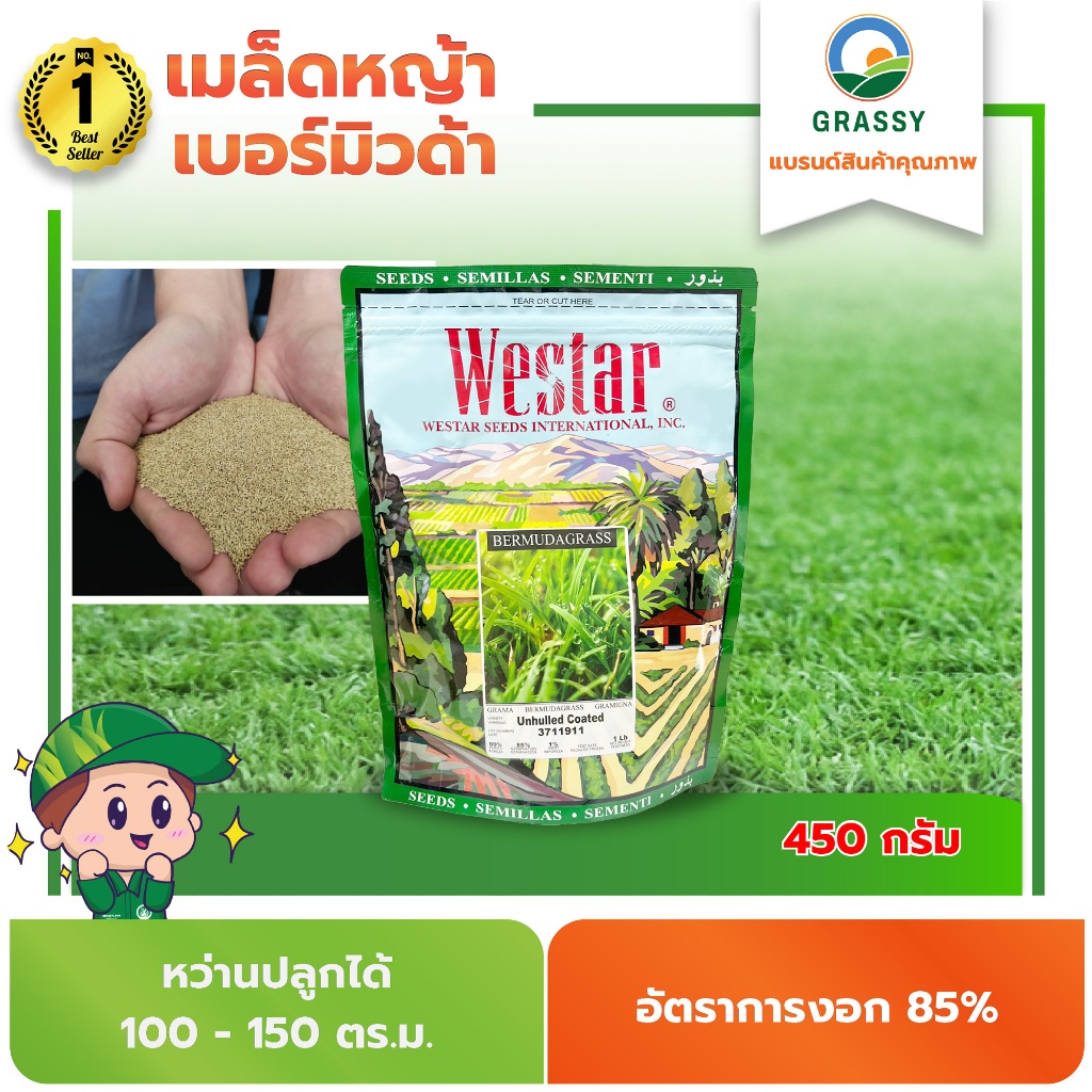 GRASSY เมล็ดหญ้าเบอร์มิวด้า 1 ปอนด์ (450กรัม) หว่านปลูกได้ 100-150 ตร.ม. ฟรี!ค่าขนส่ง ฟรี!น้ำยาเร่งราก แนะนำวิธีการปลูก
