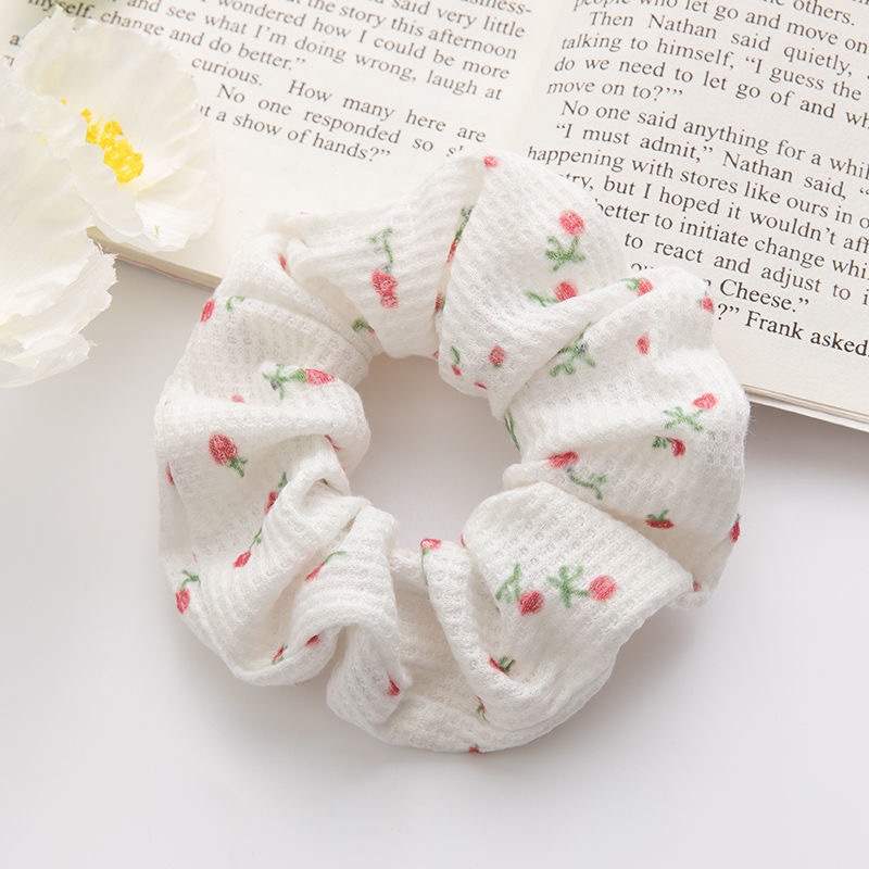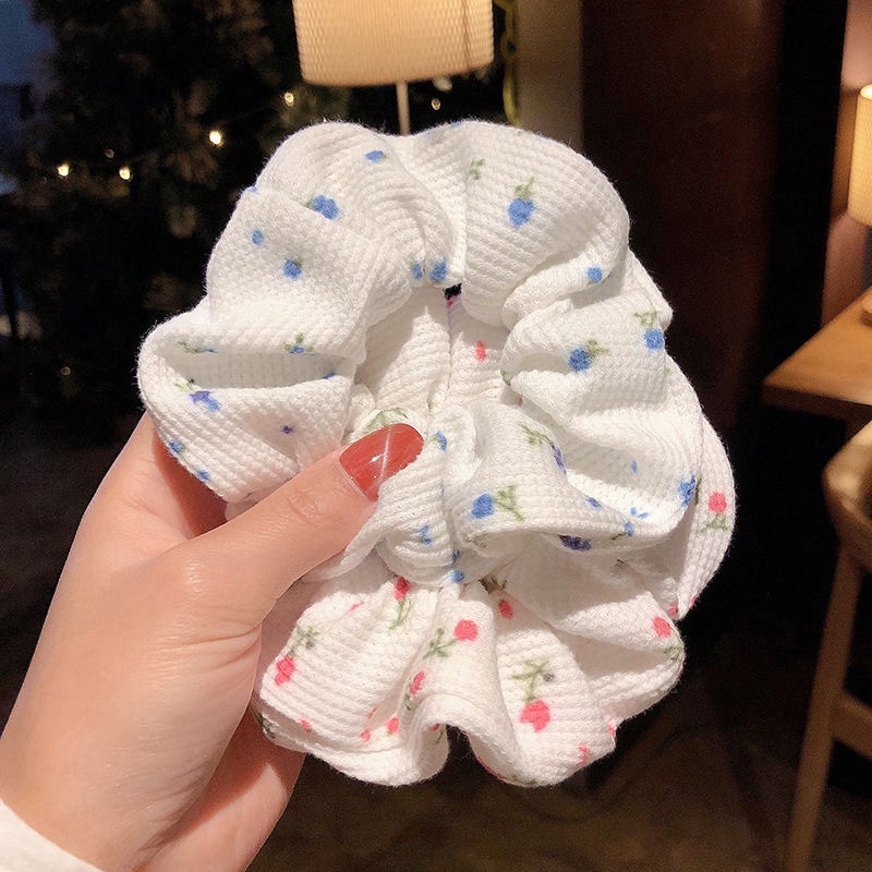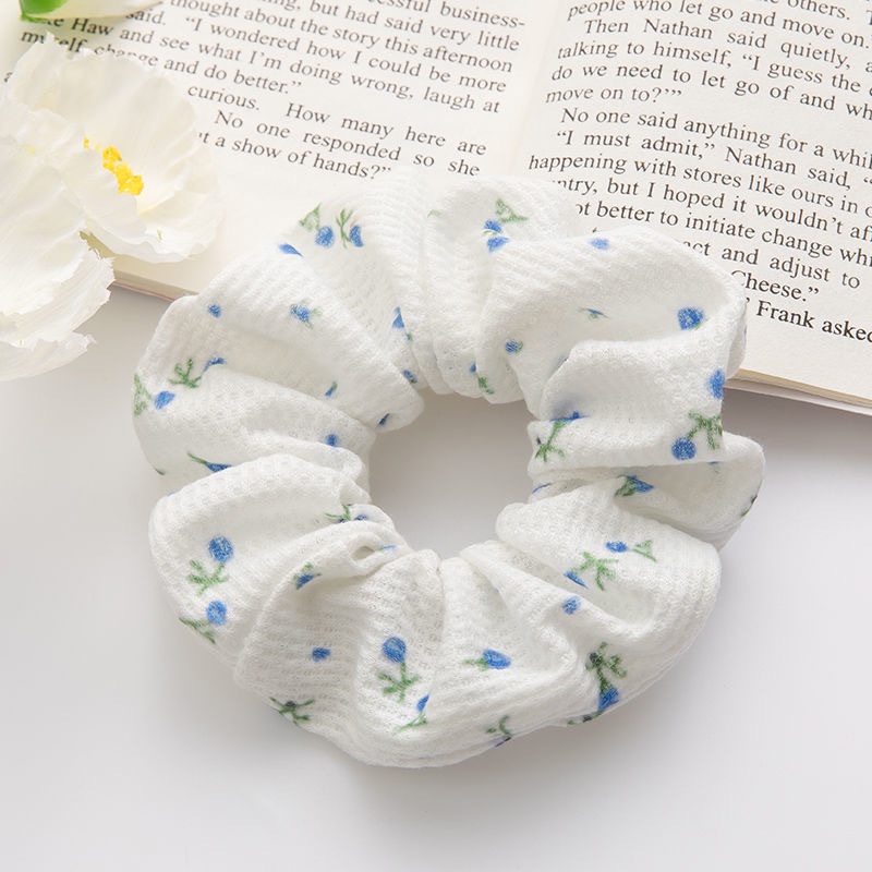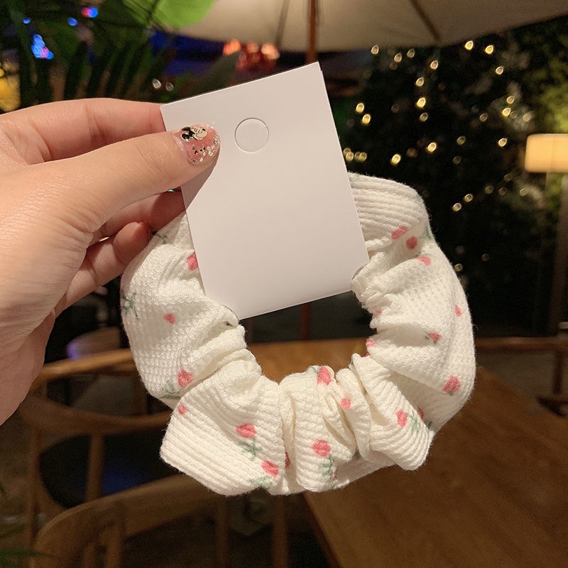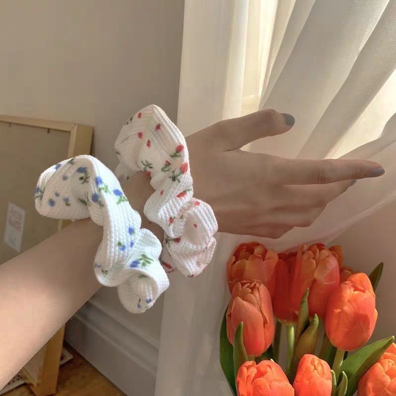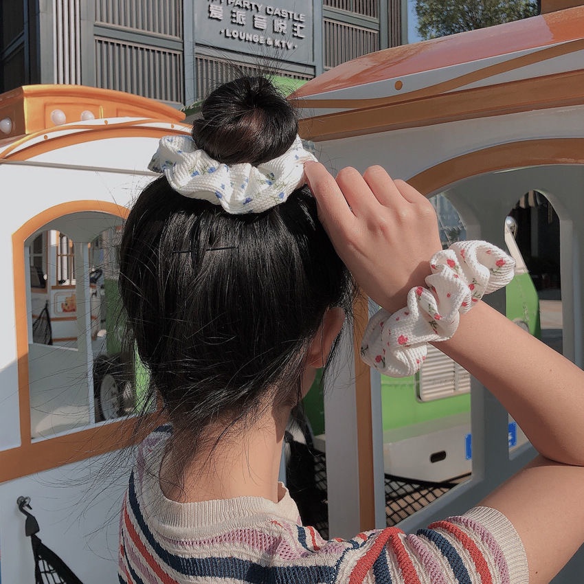 ยางรัดผมลายดอกไม้สีขาวสไตล์เกาหลีสําหรับผู้หญิง