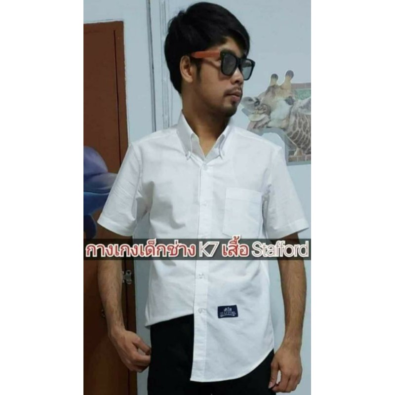 เสื้อนักเรียนผ้าดิบ Stafford คอเชิ๊ตแขนสั้น แขนยาว