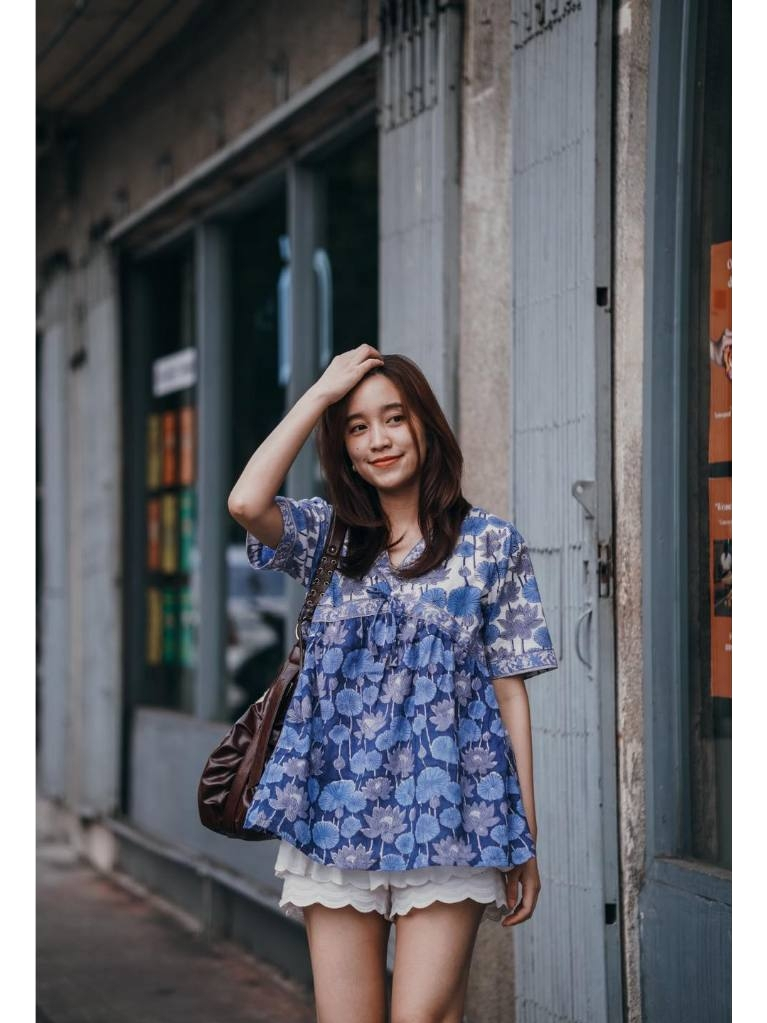 เสื้อทรงคอวีแขนสั้นรูดจีบอก