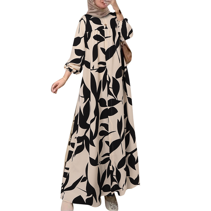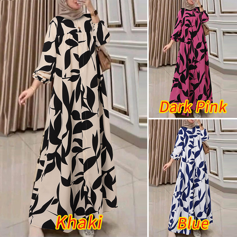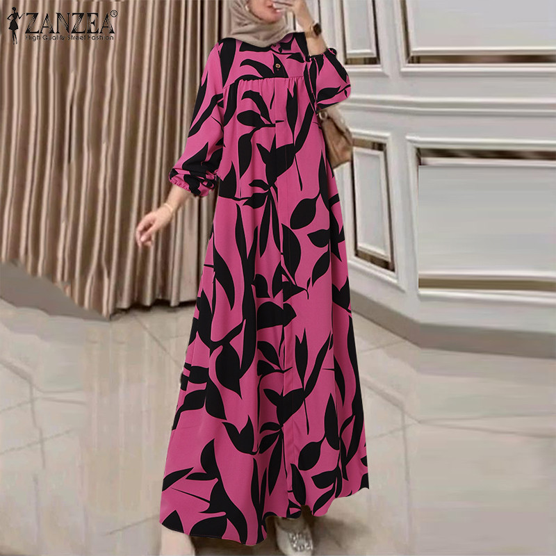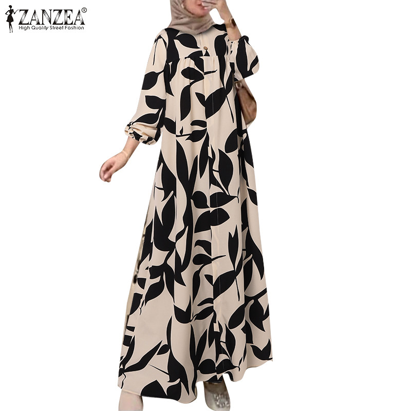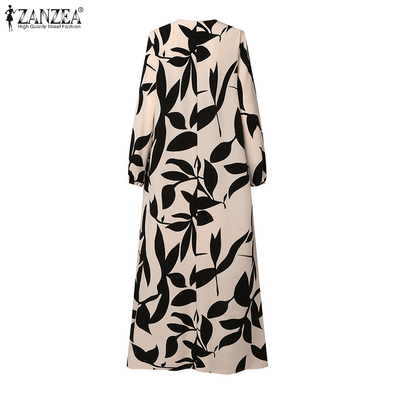 ZANZEA ซานเซีย ผู้หญิงมุสลิมแฟชั่น โอ-คอ พิมพ์แขนยาวชุดความยาวข้อเท้า