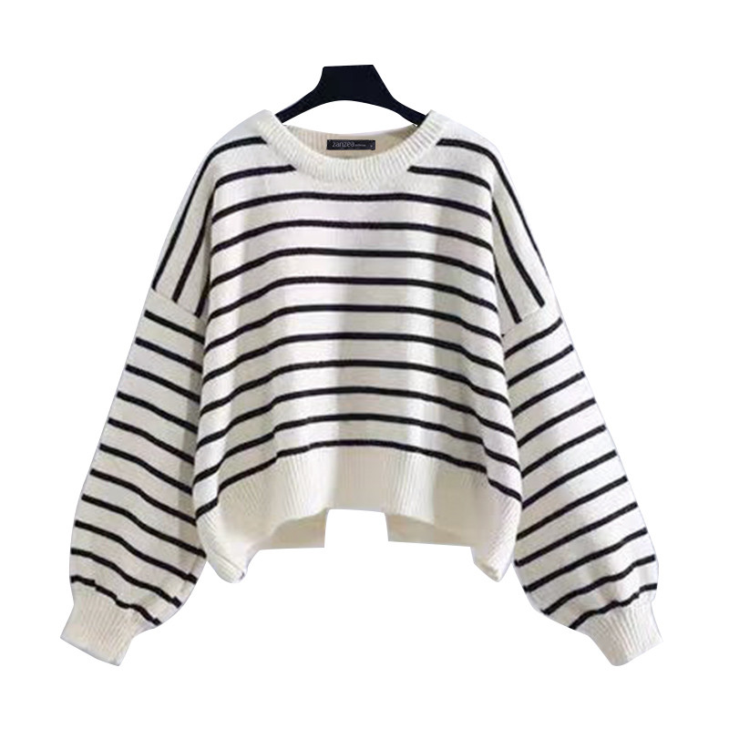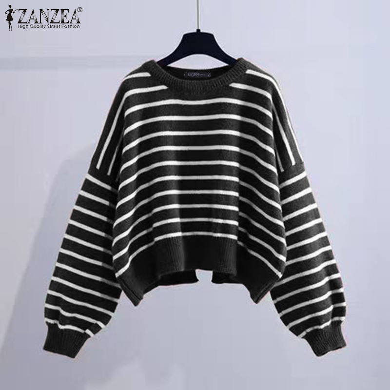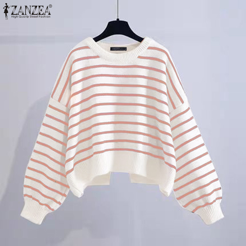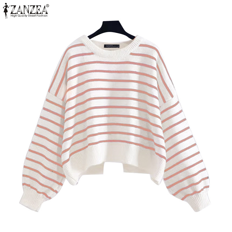 ZANZEA ซานเซีย ผู้หญิงเกาหลีลําลองลูกเรือคอเสื้อแขนยาวลายเสื้อสวมหัว