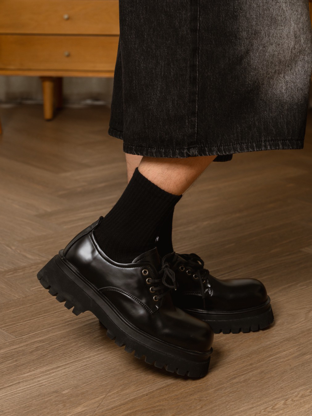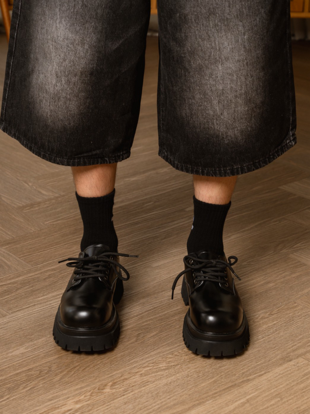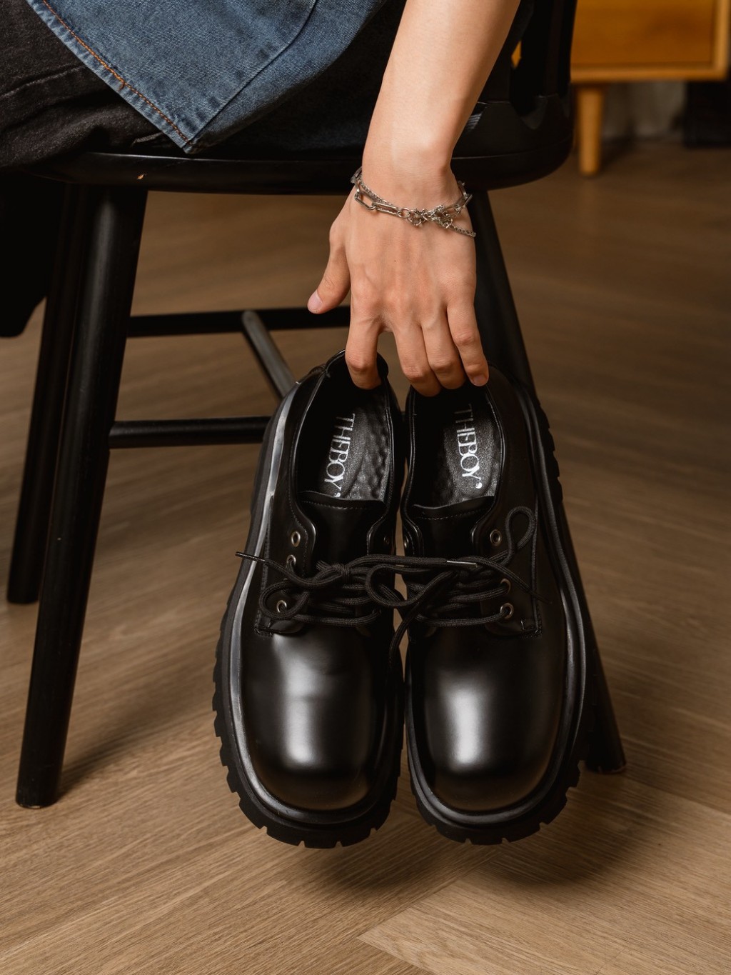 THEBOY-SANDMAS Black Shoe รองเท้าหนังแบบผูกเชือก *โปรดระวังสินค้าลอกเลียนแบบ