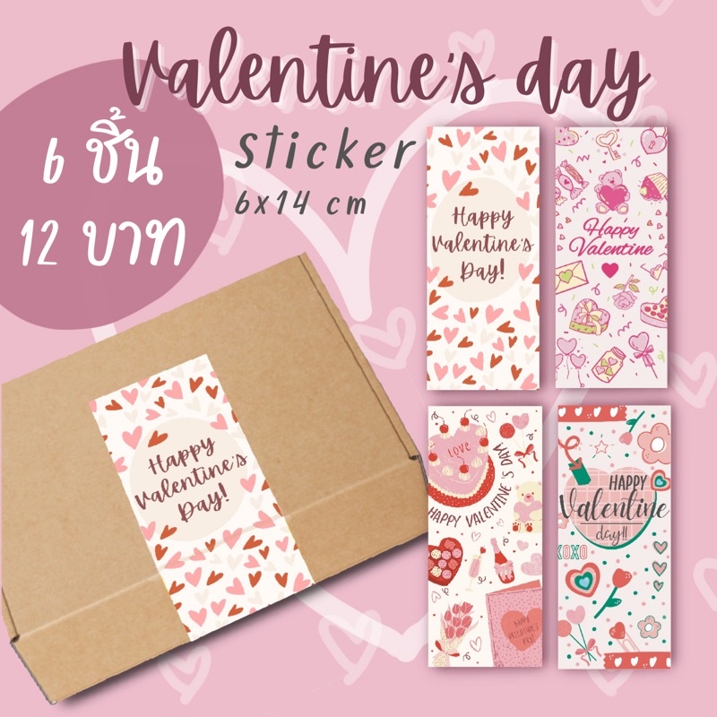 sticker แปะกล่อง ลาย วาเลนไทน์ Valentine แพ็ค 6 ชิ้น