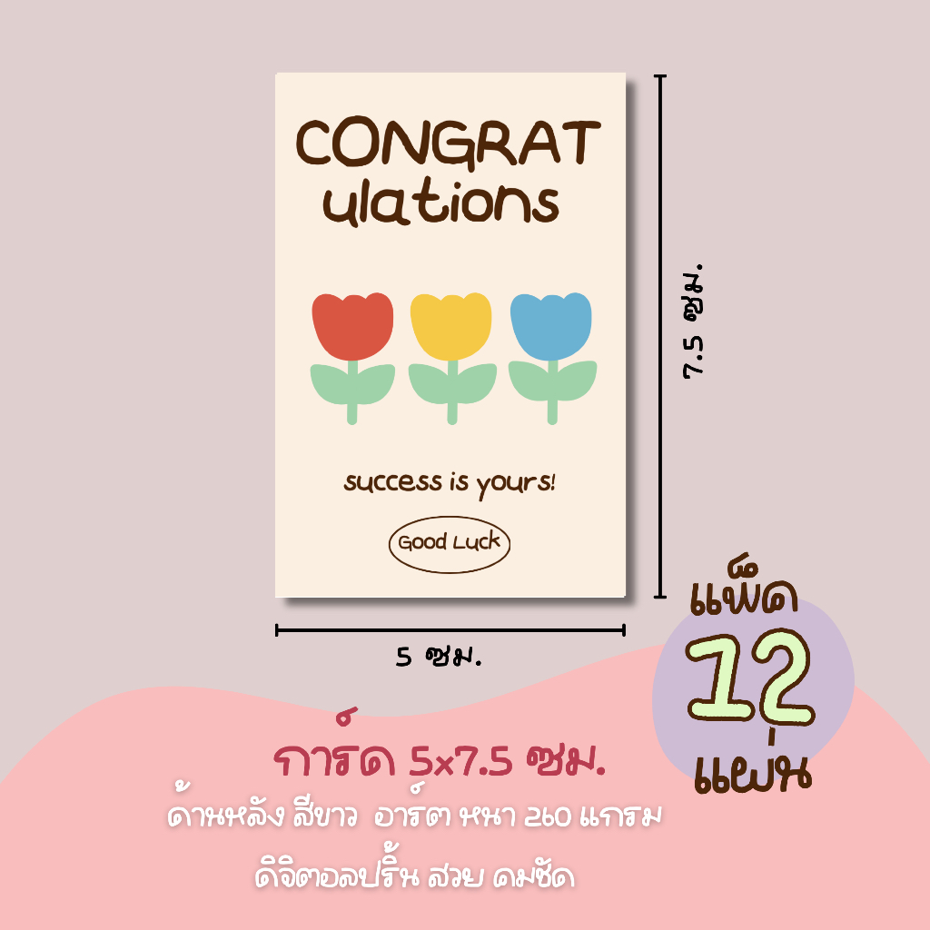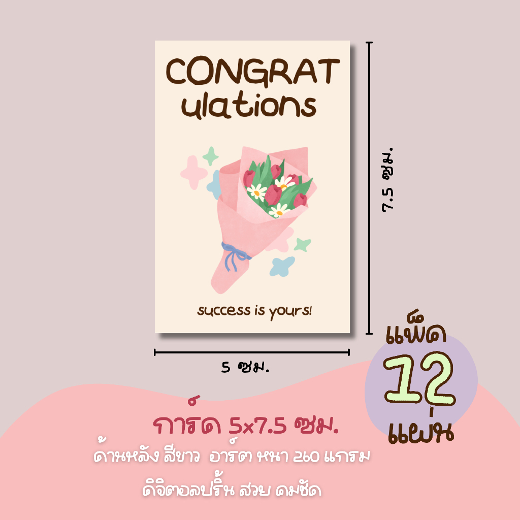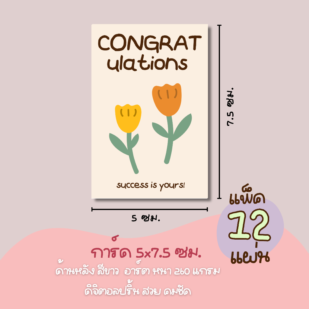 การ์ด ปัจฉิม congratulations แพ็ค 12 แผ่น ลายดอกไม้ ขนาด+รายละเอียด แจ้งไว้ในรูปภาพ (รหัส 33 - 35)