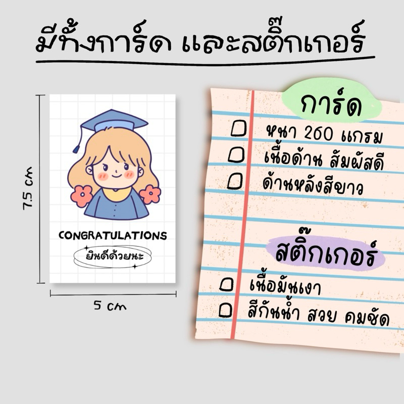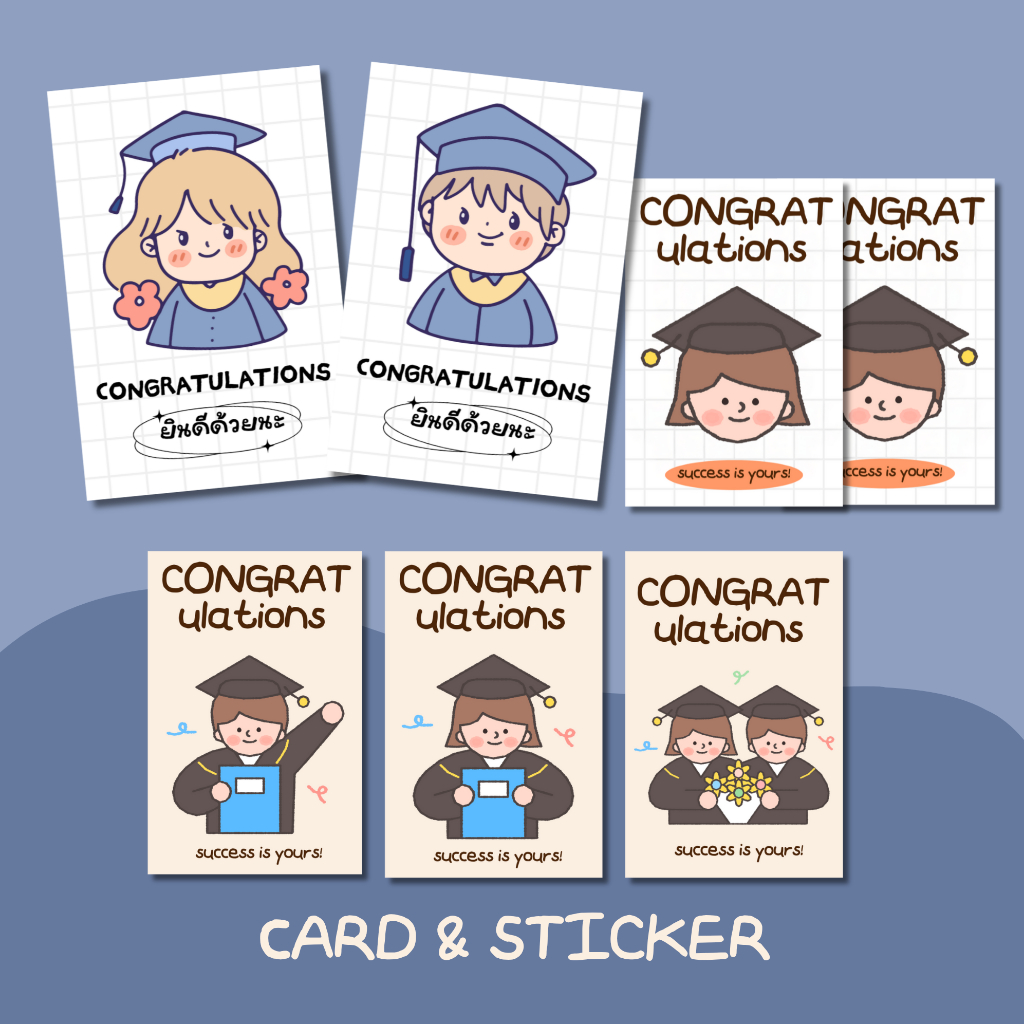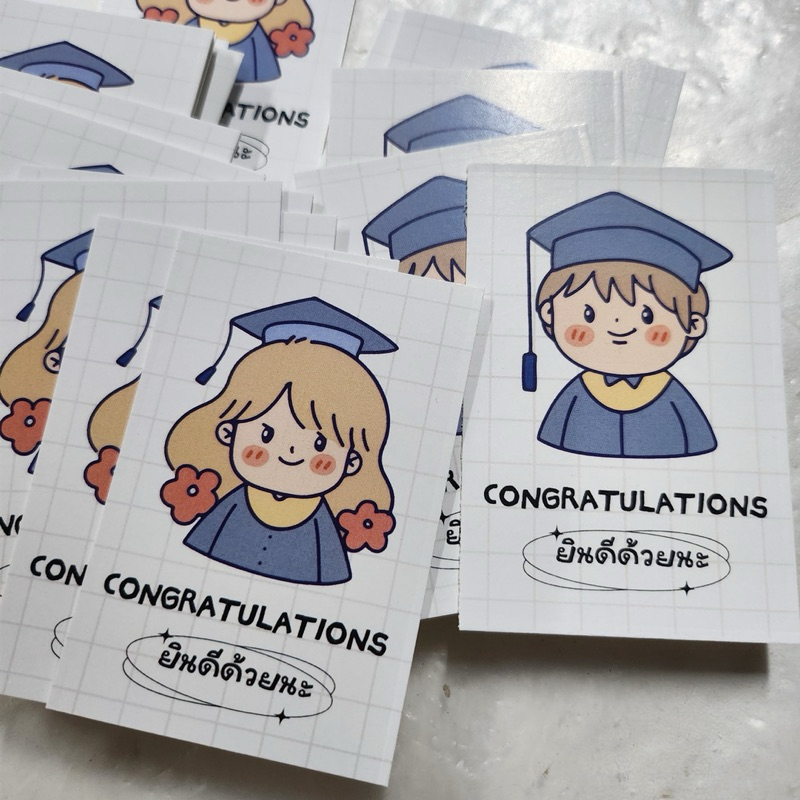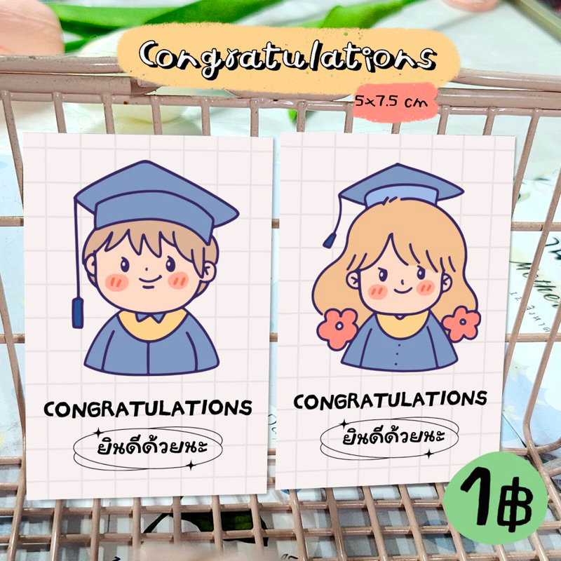 ปัจฉิม การ์ด สติ๊กเกอร์ congratulations 10 แผ่น 5x7.5 cm(รหัส con 38 )