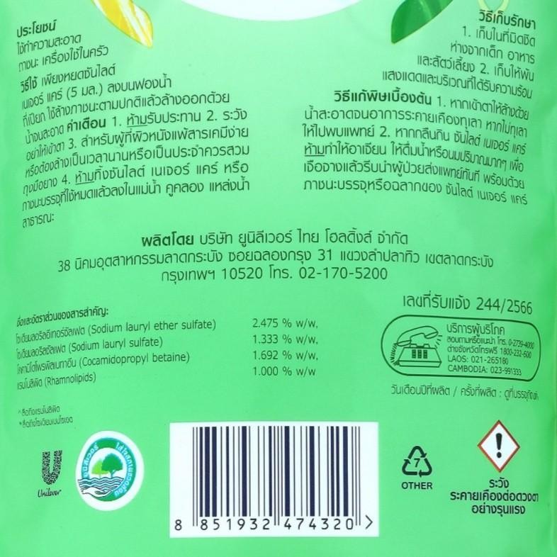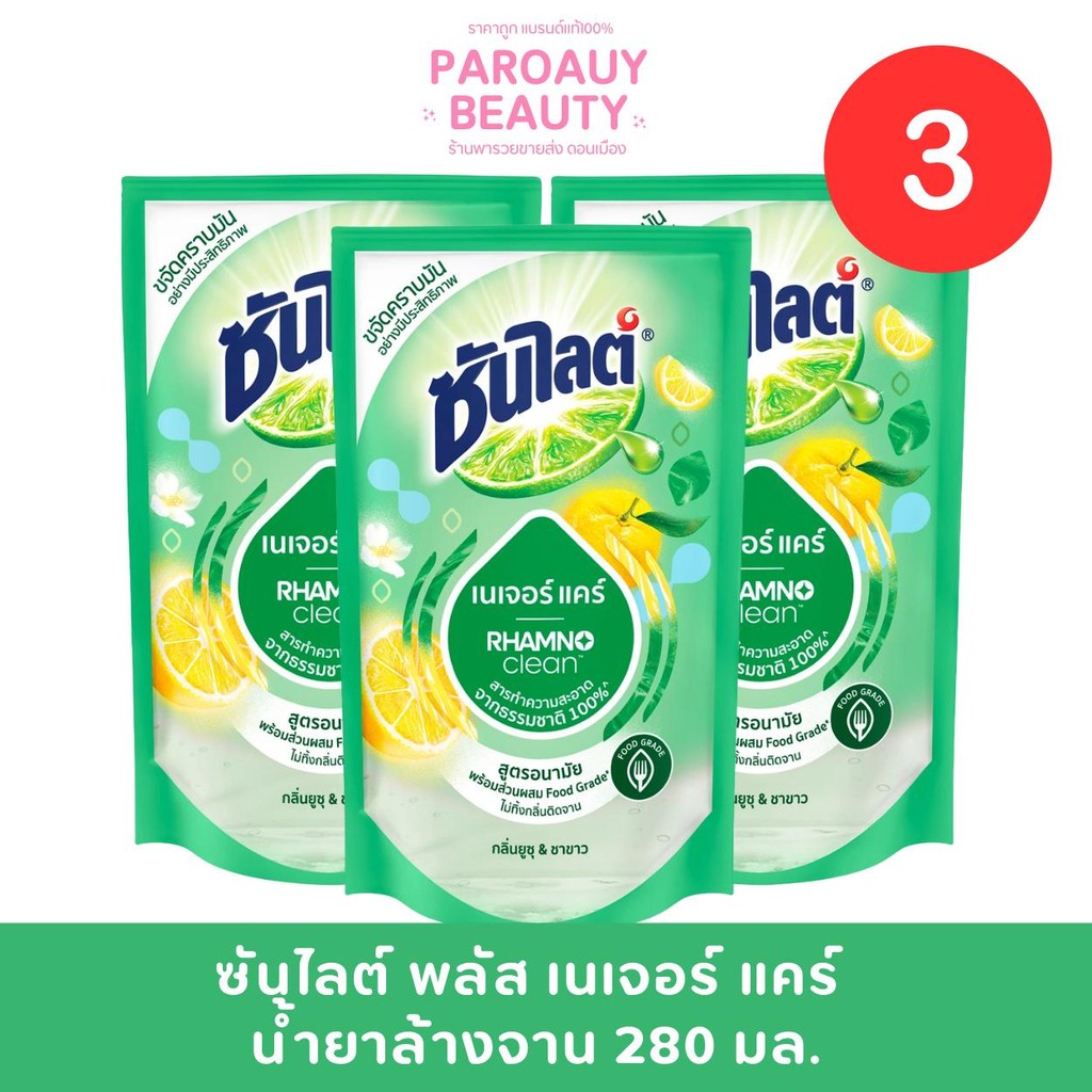 (แพค 3 ถุง เนเจอร์แคร์) ซันไลต์ พลัส เนเจอร์ แคร์ น้ำยาล้างจาน 280 มล.