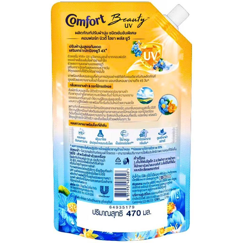 1 ถุง ปรับผ้านุ่มกันแดด คอมฟอร์ท บิวตี้ ไฮยา พลัส ยูวี ผลิตภัณฑ์ปรับผ้านุ่ม ขนาด 470 มล. Comfort