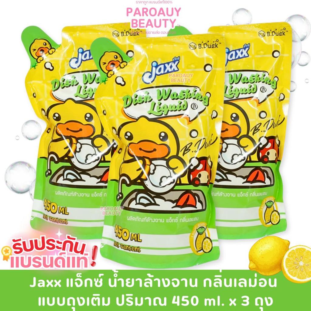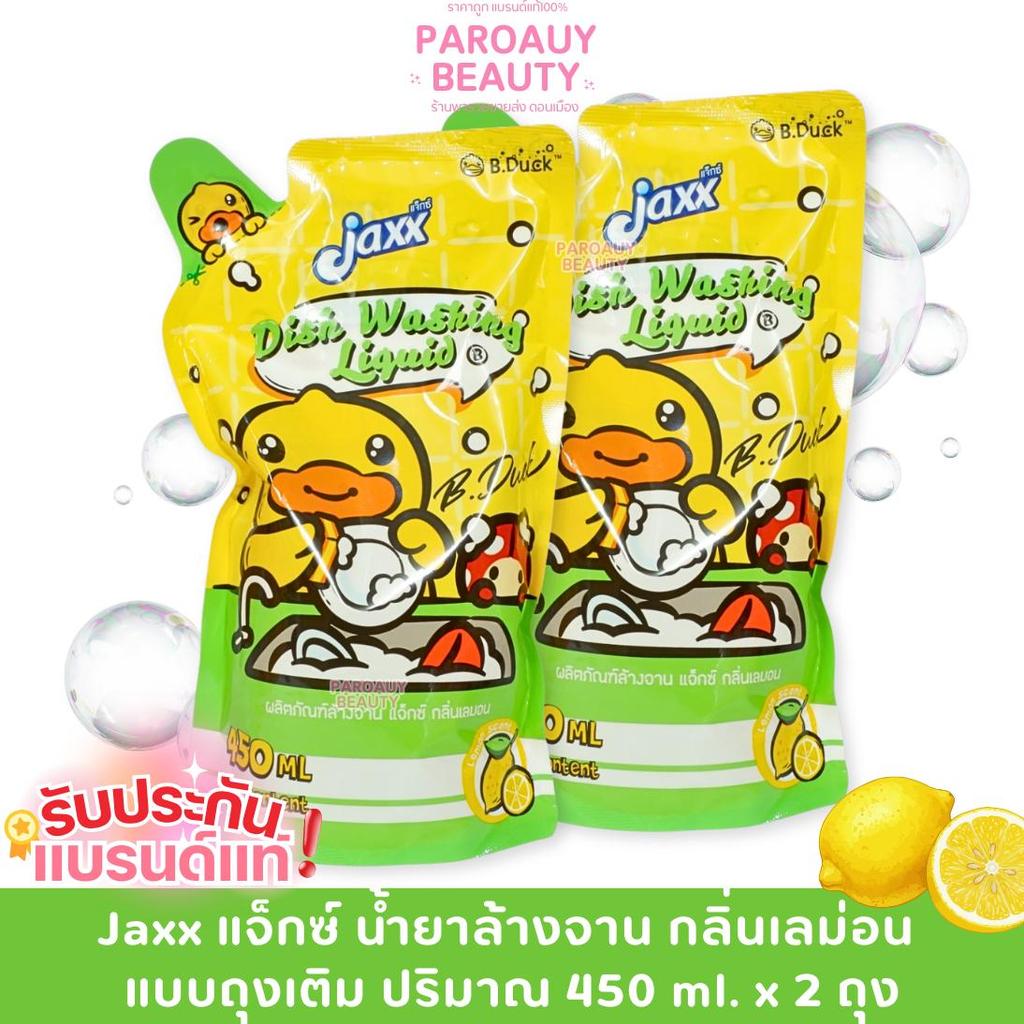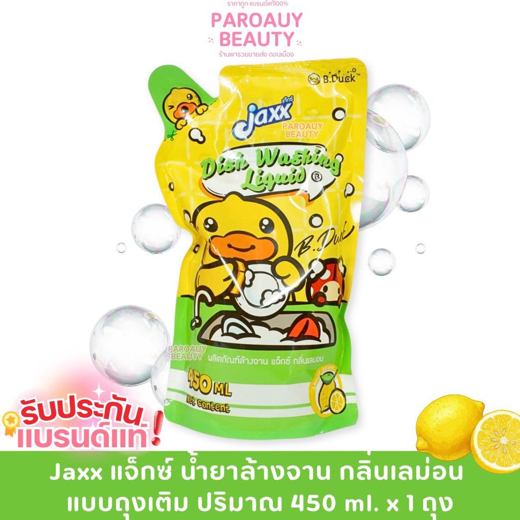 ( โปรโมชั่น ) Jaxx แจ็กซ์ น้ำยาล้างจาน ขจัดคราบมัน กลิ่นเลม่อน ถุงเติม ปริมาณ 450 ml.