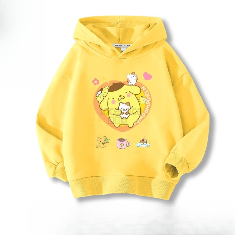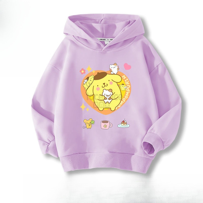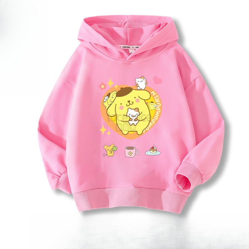 เสื้อฮู้ดลายการ์ตูน Pompompurin สําหรับเด็กชายและเด็กหญิงเด็กแฟชั่นฤดูใบไม้ร่วงฤดูหนาว Cozy Top