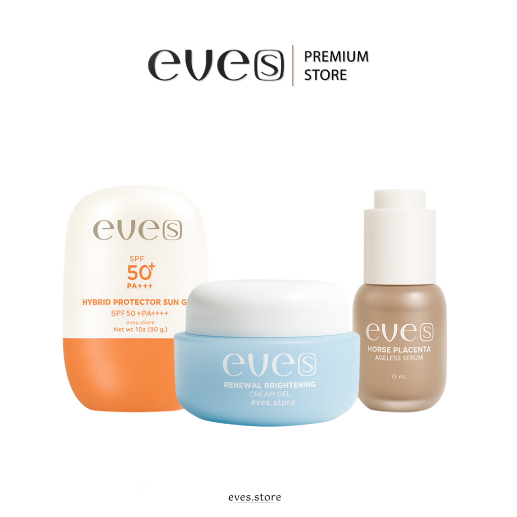 EVES อีฟส์ เซ็ตหน้าใสท้าแดด ไม่กลัวแสง เซรั่มรกม้า ครีมเจลอีฟส์ กันแดด กระชับรูขุมขน ผิวขาวกระจ่างใส