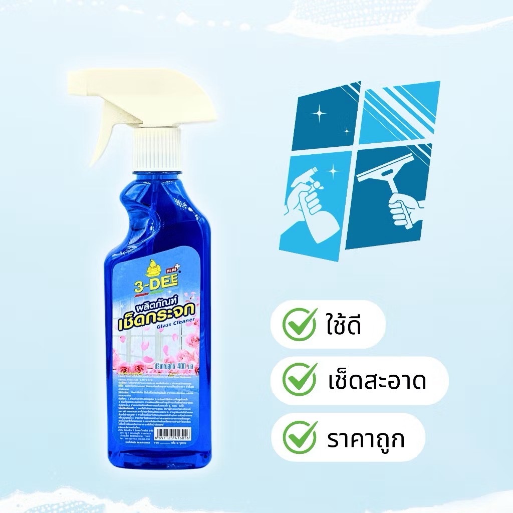 🌫️ น้ำยาเช็ดกระจก 3-Dee (400ml.): กระจกใสปิ๊ง ไร้คราบ! แบบสเปรย์ใช้งานง่าย ทำความสะอาดหมดจด