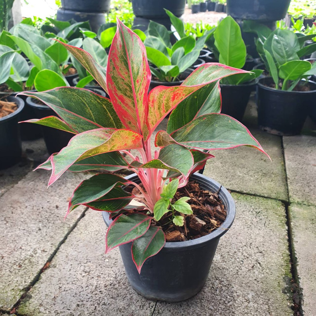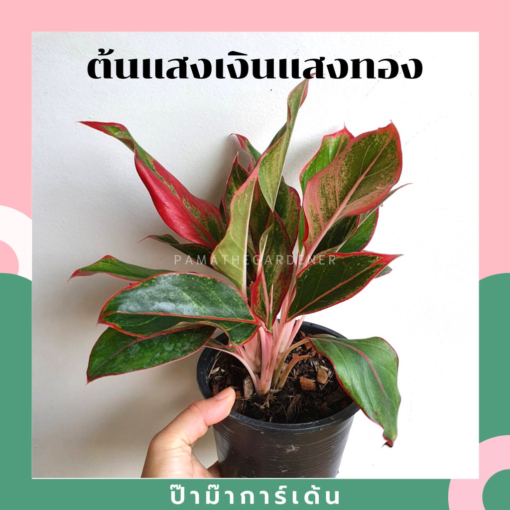 ต้นแสงเงินแสงทอง ในกระถางพร้อมตั้ง อโกลนีมา ต้นไม้มงคล