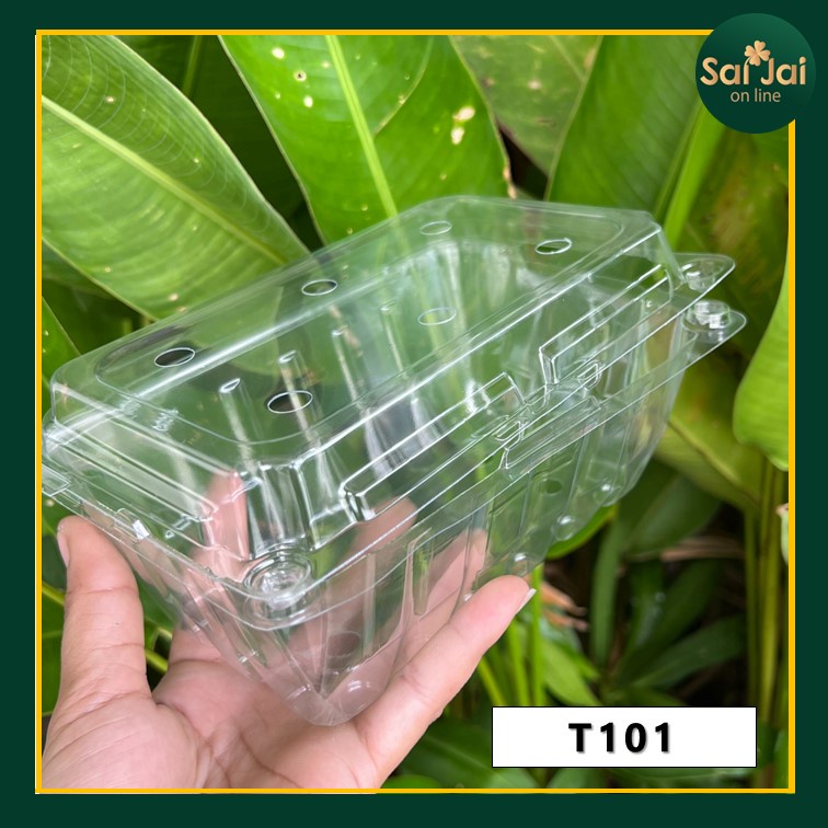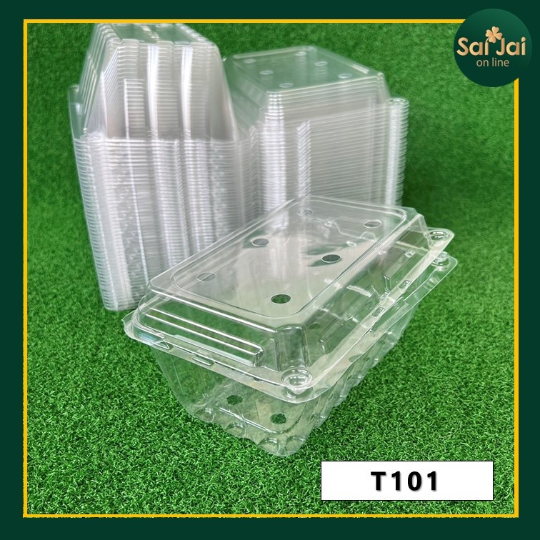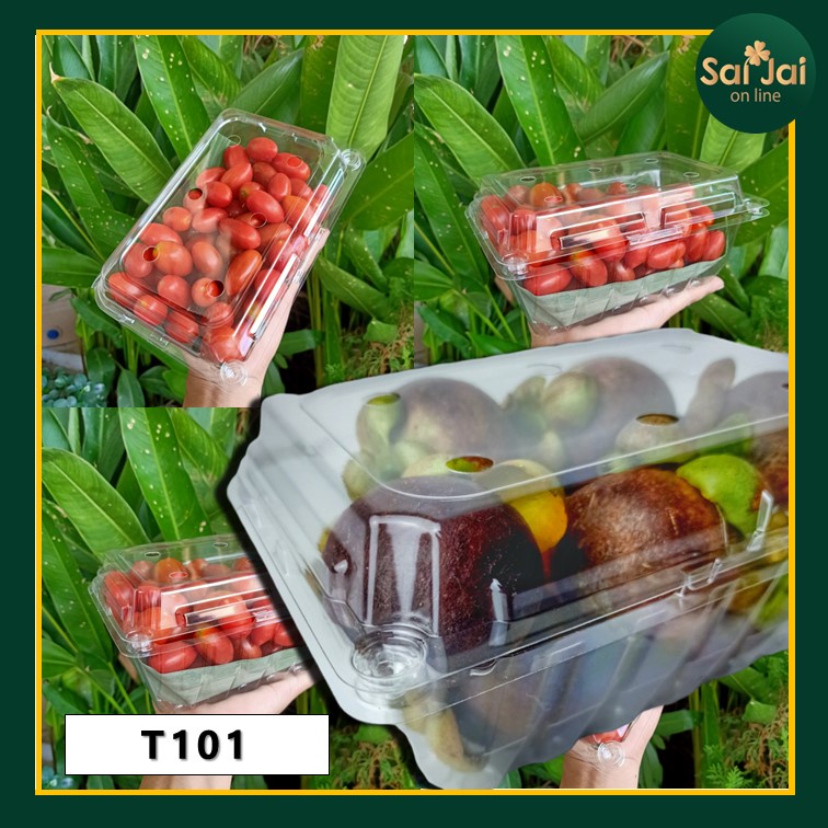 กล่องใส่ผลไม้ #T101ฝาล็อคแน่น กล่องเจาะรู บรรจุ500กรัม(แพ็ค50ใบ)