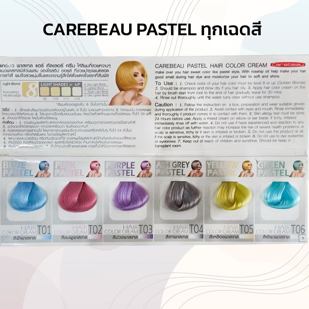 แคร์บิว T02 สีชมพู พาสเทล สีผม สีย้อมผม ครีมเปลี่ยนสีผม ยาย้อมผม ครีมย้อมผม Carebeau T02 Pink Pastel