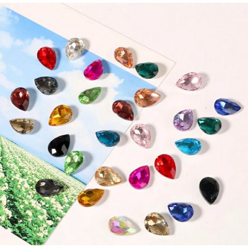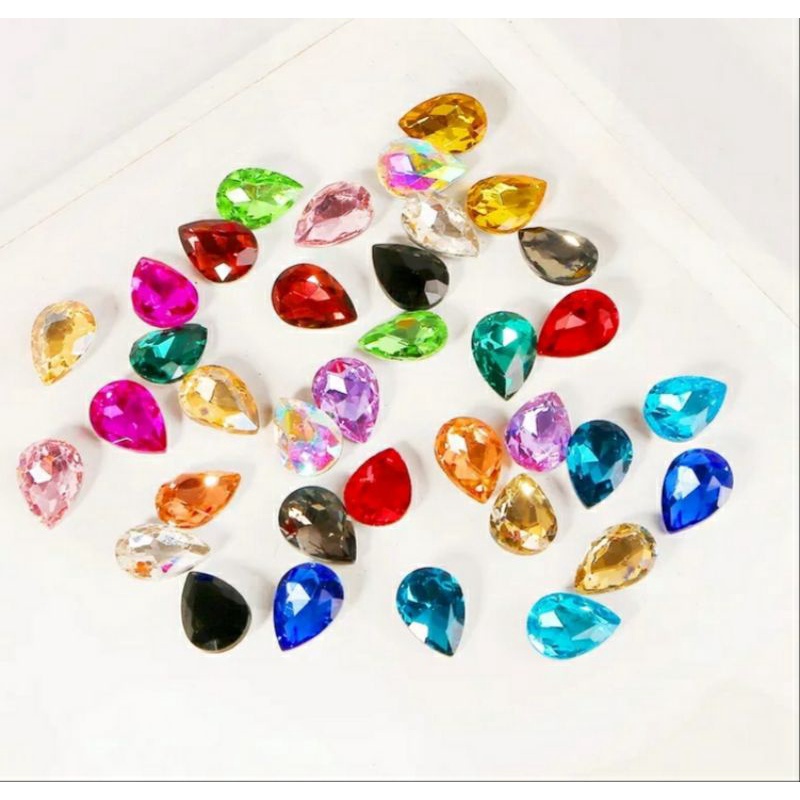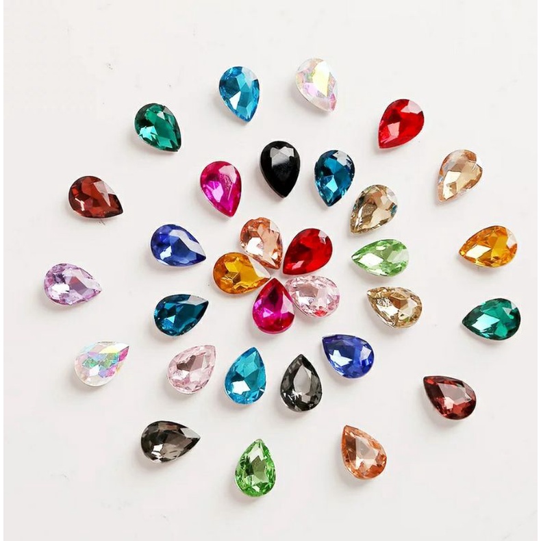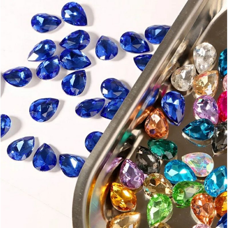 เพชรติดเล็บทรงหยดน้ำ ก้นนูน ขนาด6*8mm. คริสตัลติดเล็บ ตกแต่งเล็บ
