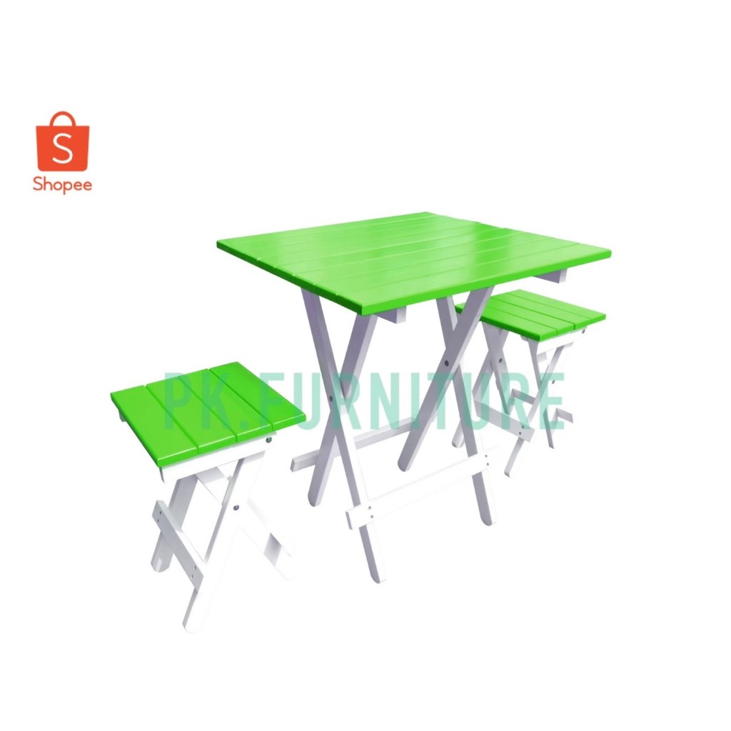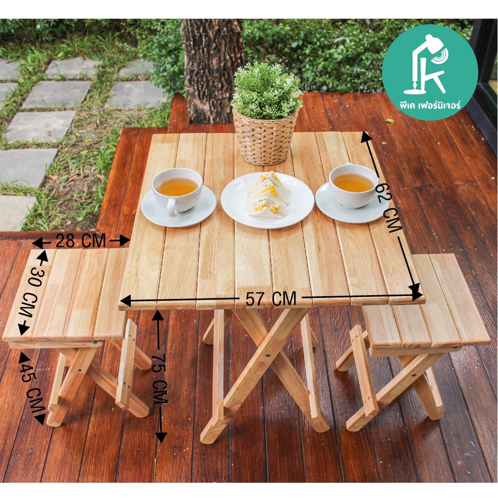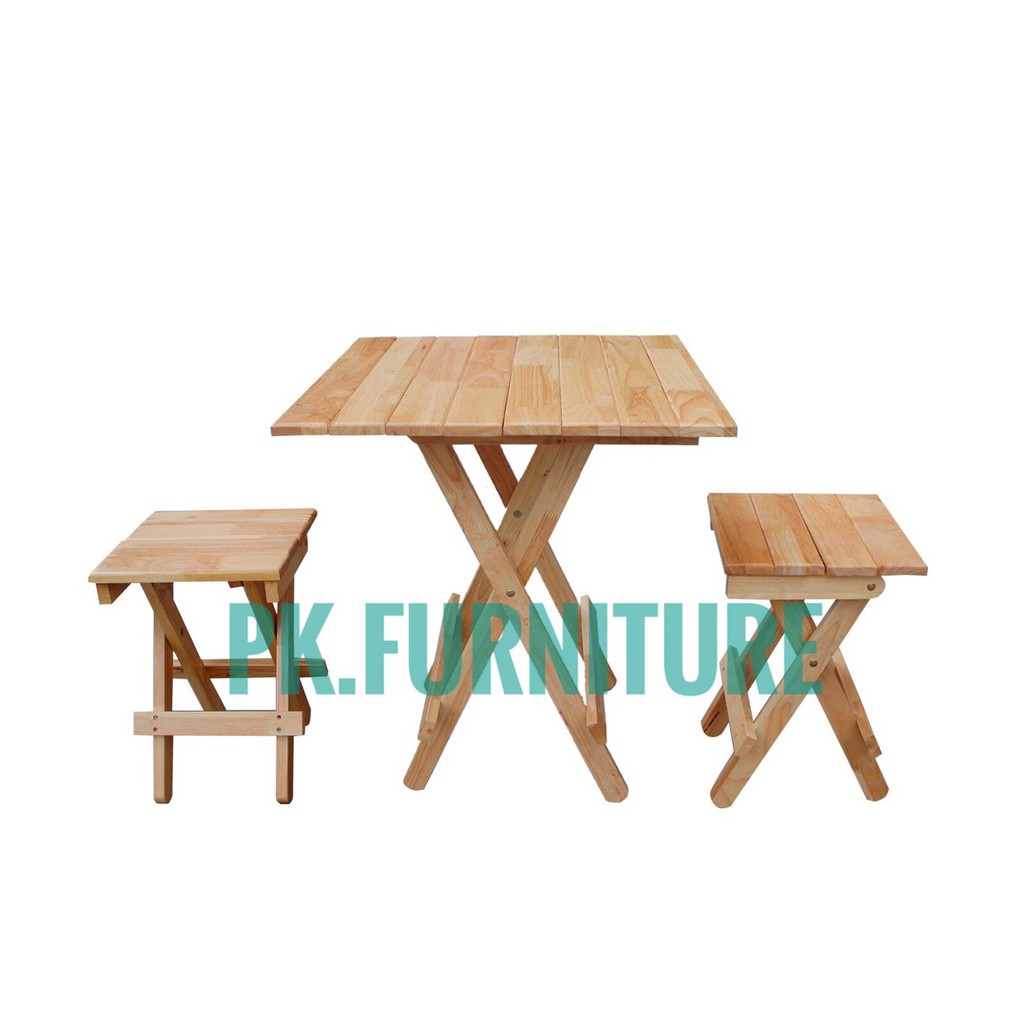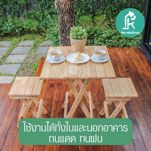 [ซื้อในLiveลดเหลือ 1,079] ชุดโต๊ะปิคนิค โต๊ะสนามปิคนิคพับเก็บได้ ผลิตจากไม้ยางพารา[ในชุดมีโต๊ะ1ตัวเก้าอี้ 2ตัว]