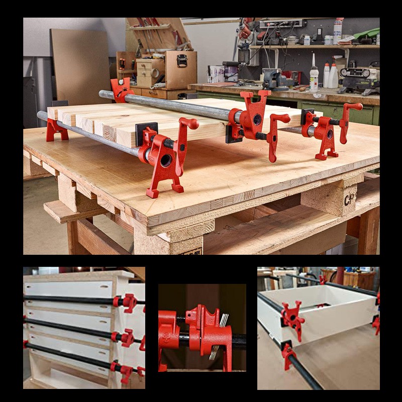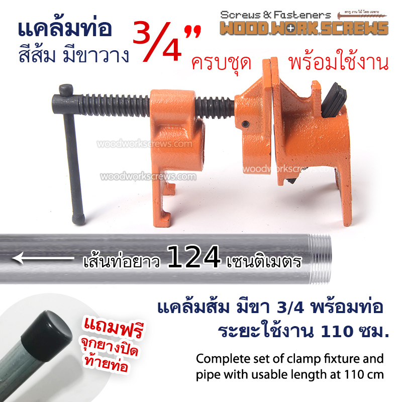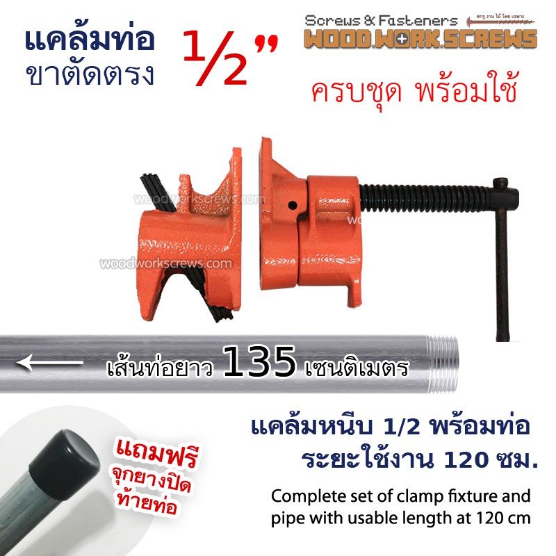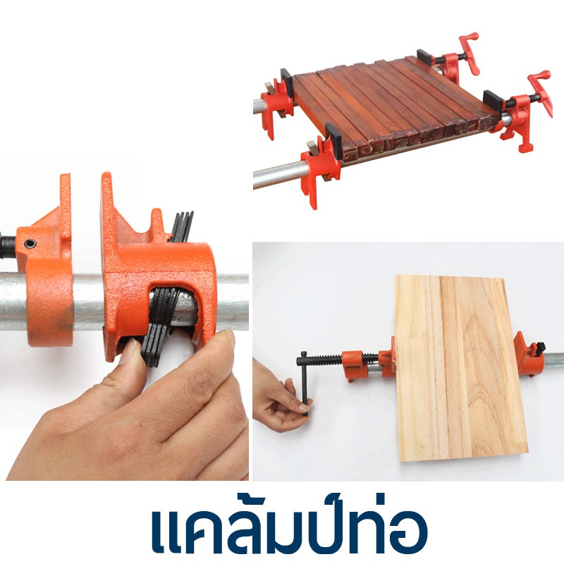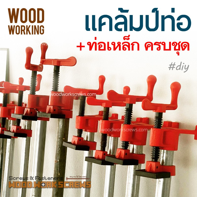 ครบชุด แคล้มท่อ + ท่อเหล็ก 4-6หุน แคล้มป์ท่องานไม้ ปากกาอัดไม้ แคมป์ท่อ เพลาะไม้ pipe clamp ทำเกลียวสองด้าน