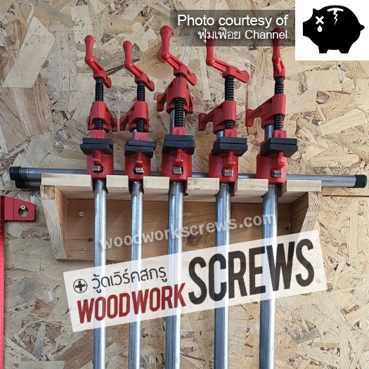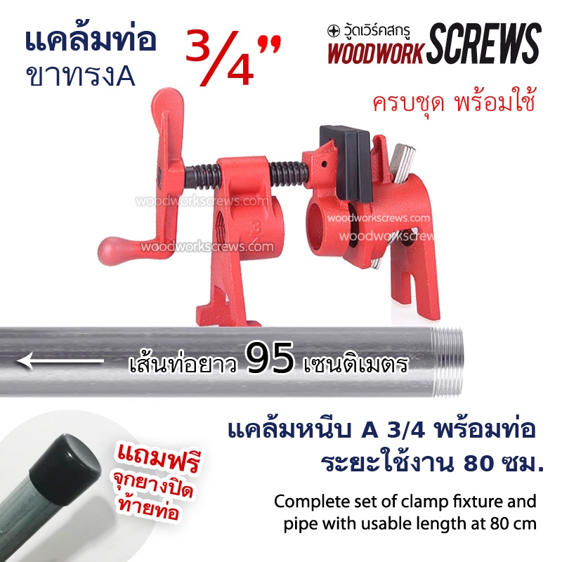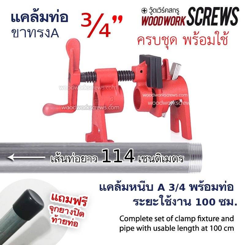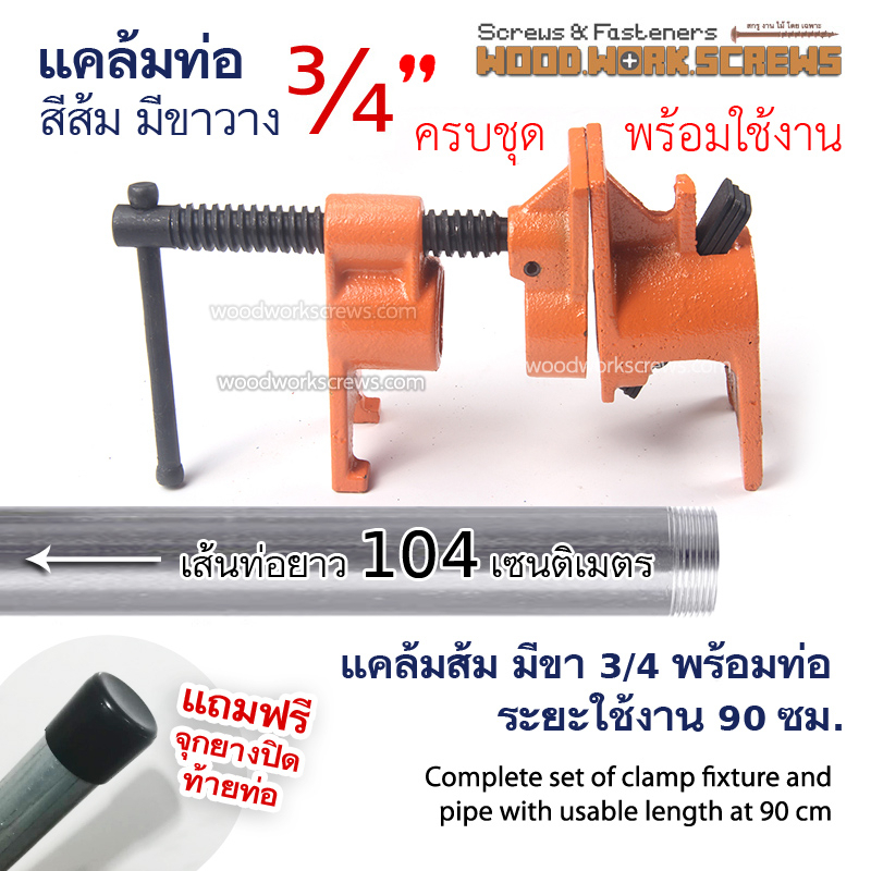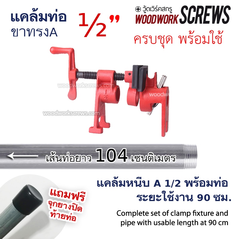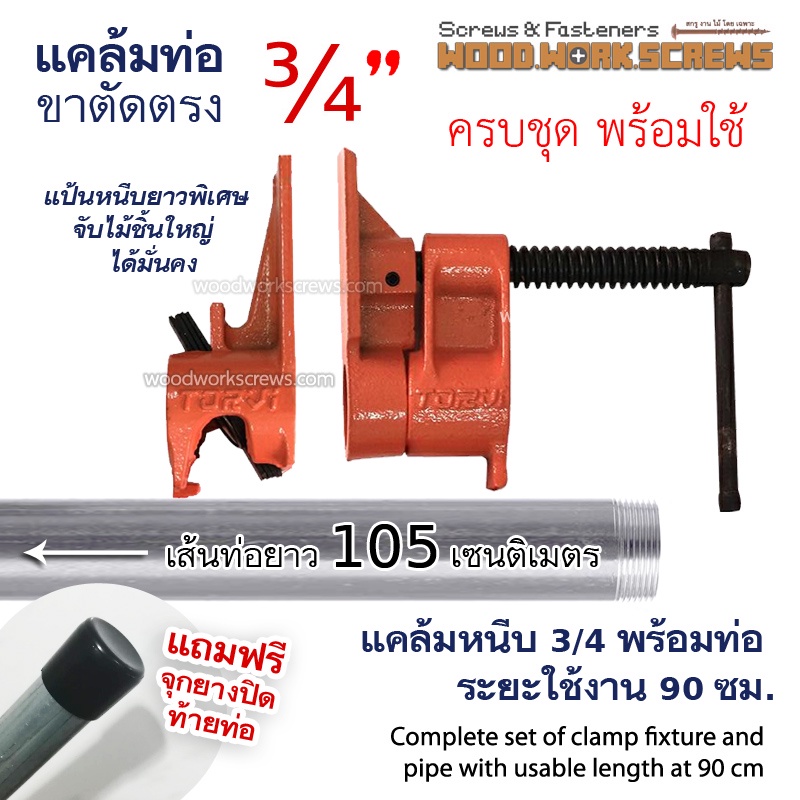 ครบชุด แคล้มท่อ + ท่อเหล็ก 4-6หุน แคล้มป์ท่องานไม้ ปากกาอัดไม้ แคมป์ท่อ เพลาะไม้ pipe clamp ทำเกลียวสองด้าน