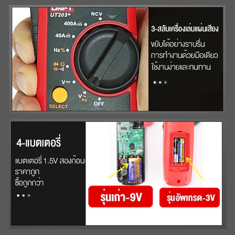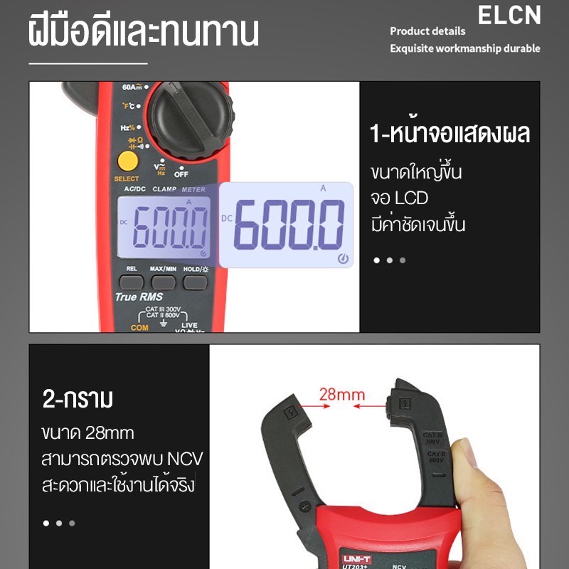 UNI-T UT202A+NCV 600A/AC 600v/AC-DCคลิปแอมป์ แคล้มป์มิเตอร์ มิเตอร์วัดไฟดิจิตอล มัลติมิเตอร์