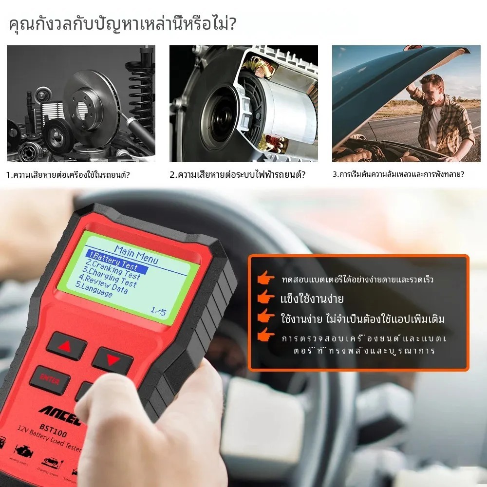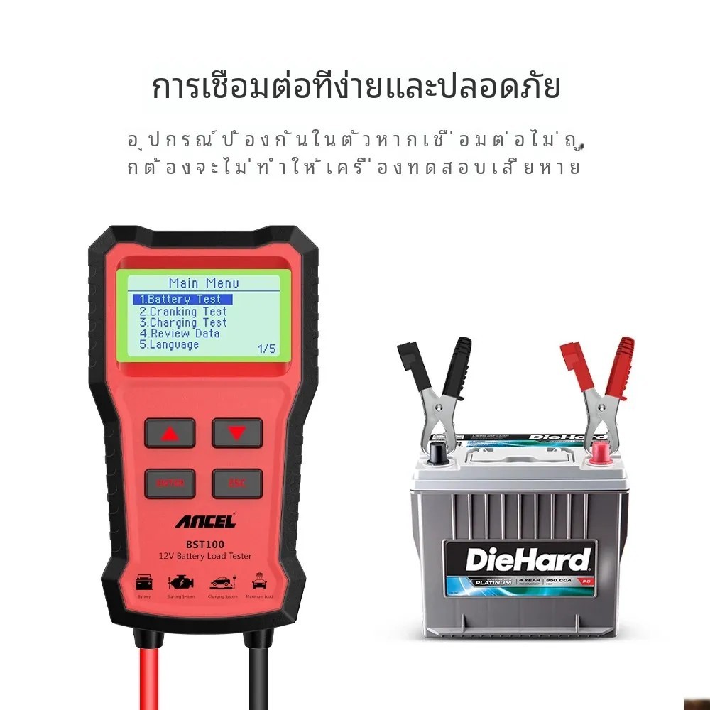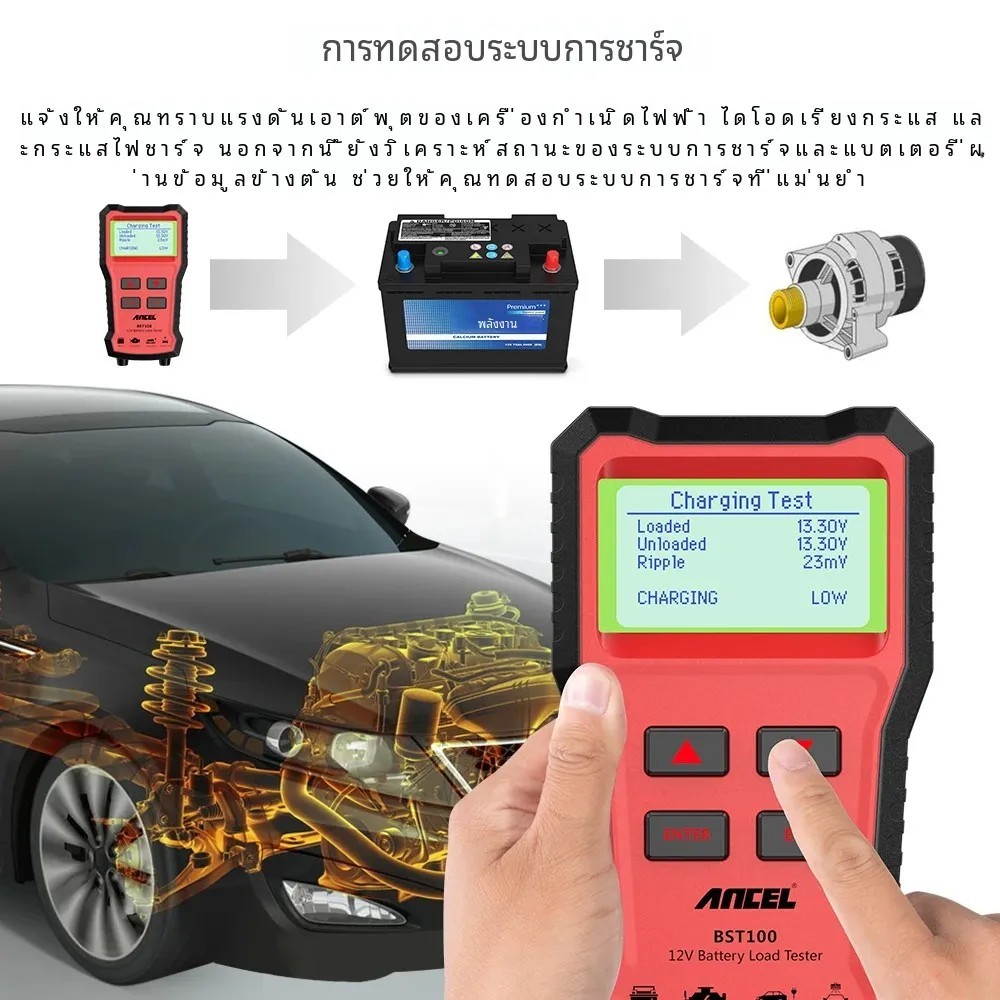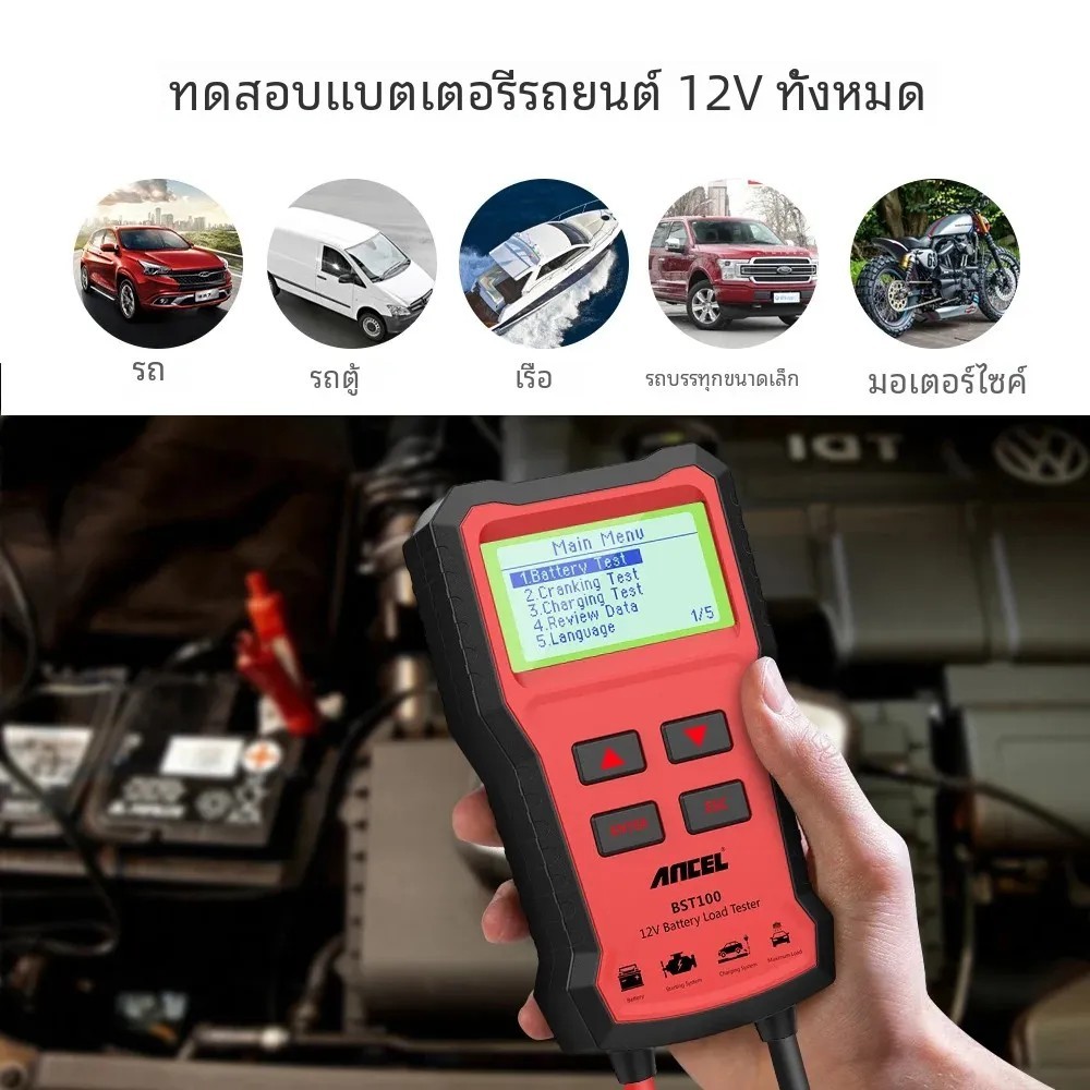 Ancel BST100 12V เครื่องทดสอบแบตเตอรี่ เครื่องวิเคราะห์แบตเตอรี่รถยนต์ ตรวจสอบสุขภาพแบตเตอรี่