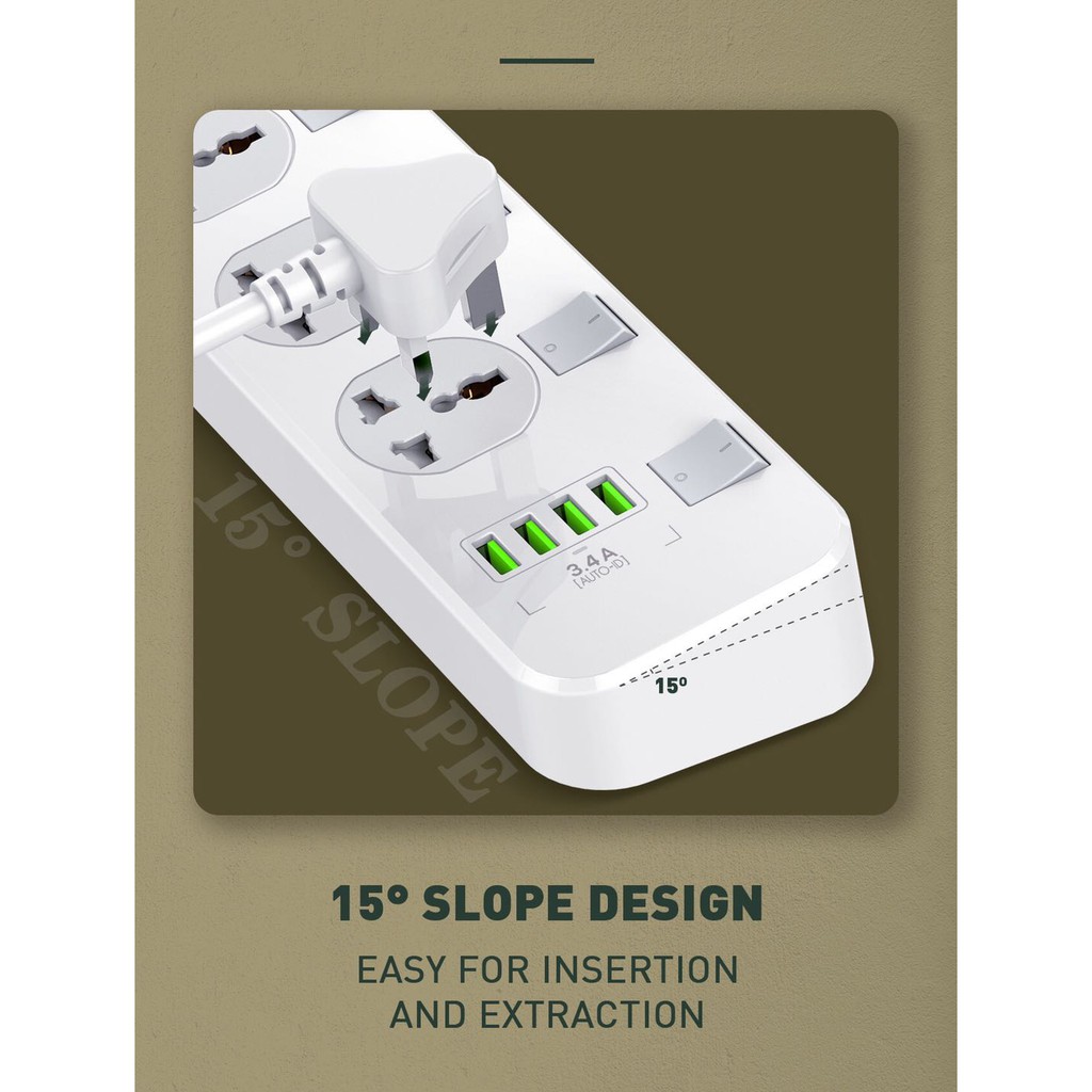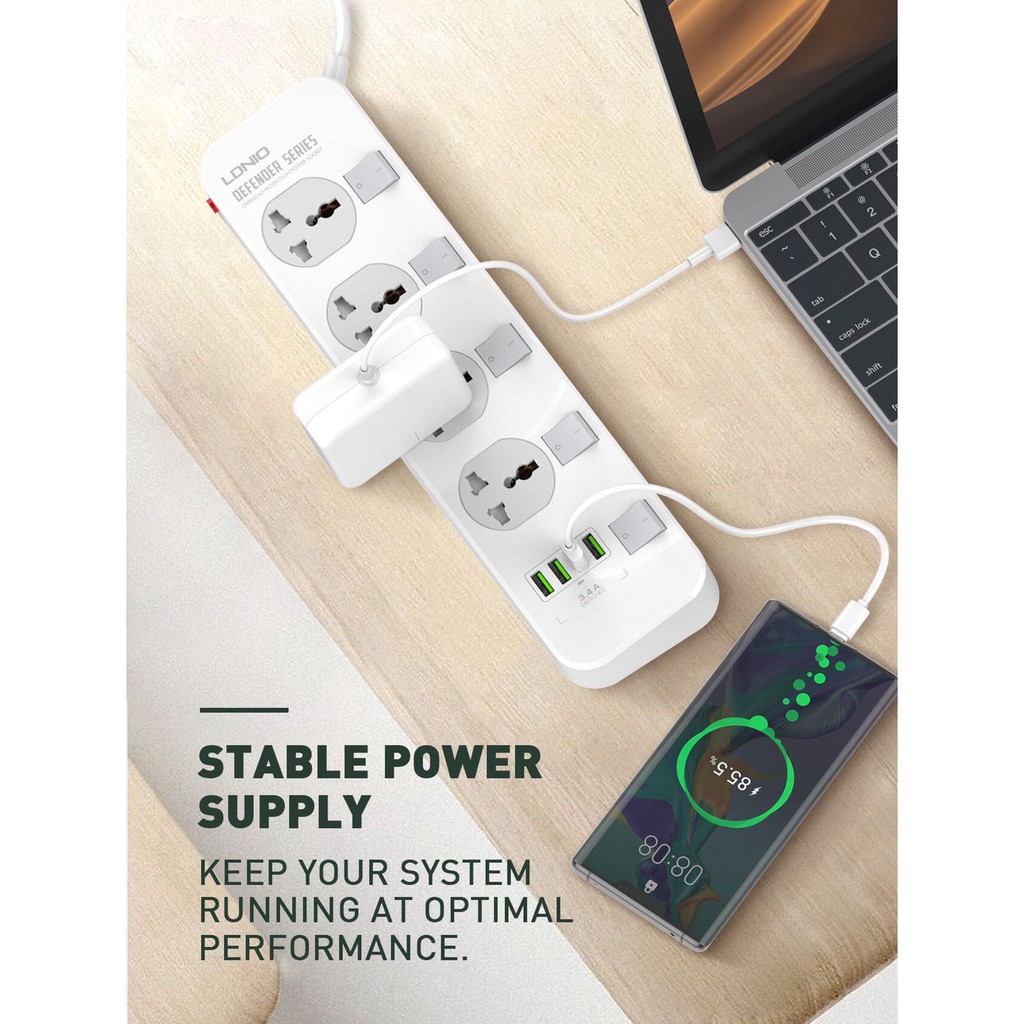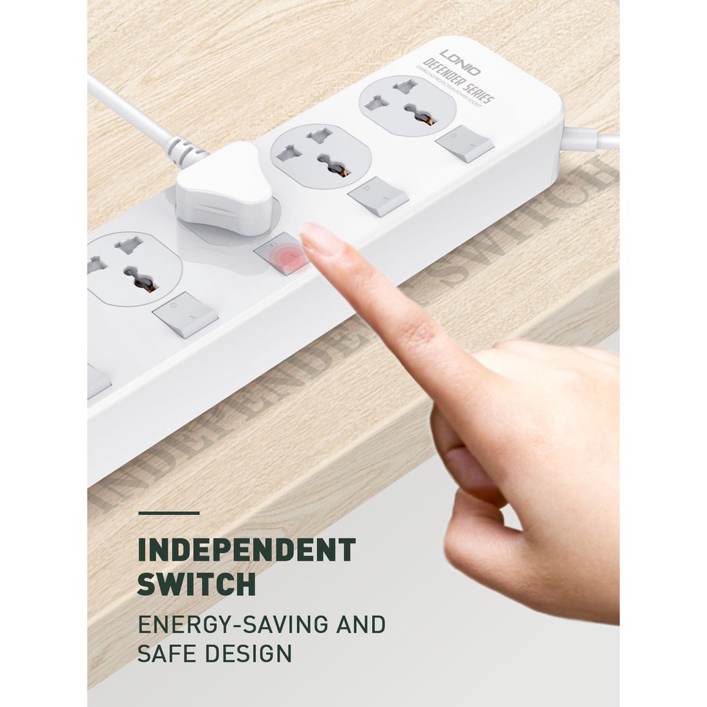 LDNIO รุ่น SC4408 ปลั๊กพ่วง แบบใช้ในบ้าน มี 4usb 4ช่อง สายรองรับถึง 4 universal outlet Power Strip 2500W (หัวชาร์3ขา)