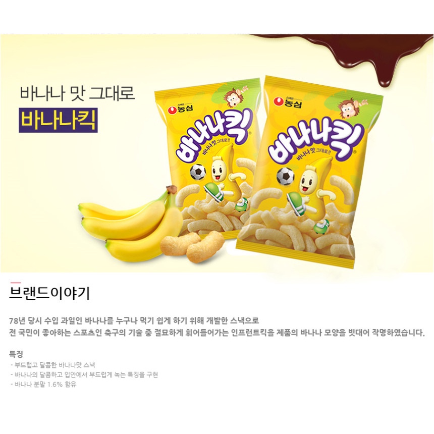 nongshim banana kick snack 75gบานาน่าคิกส์ ขนมอบกรอบรสกล้วยหอม จองกุกกิน บังทันกิน 농심 바나나 킥 45g 75g.