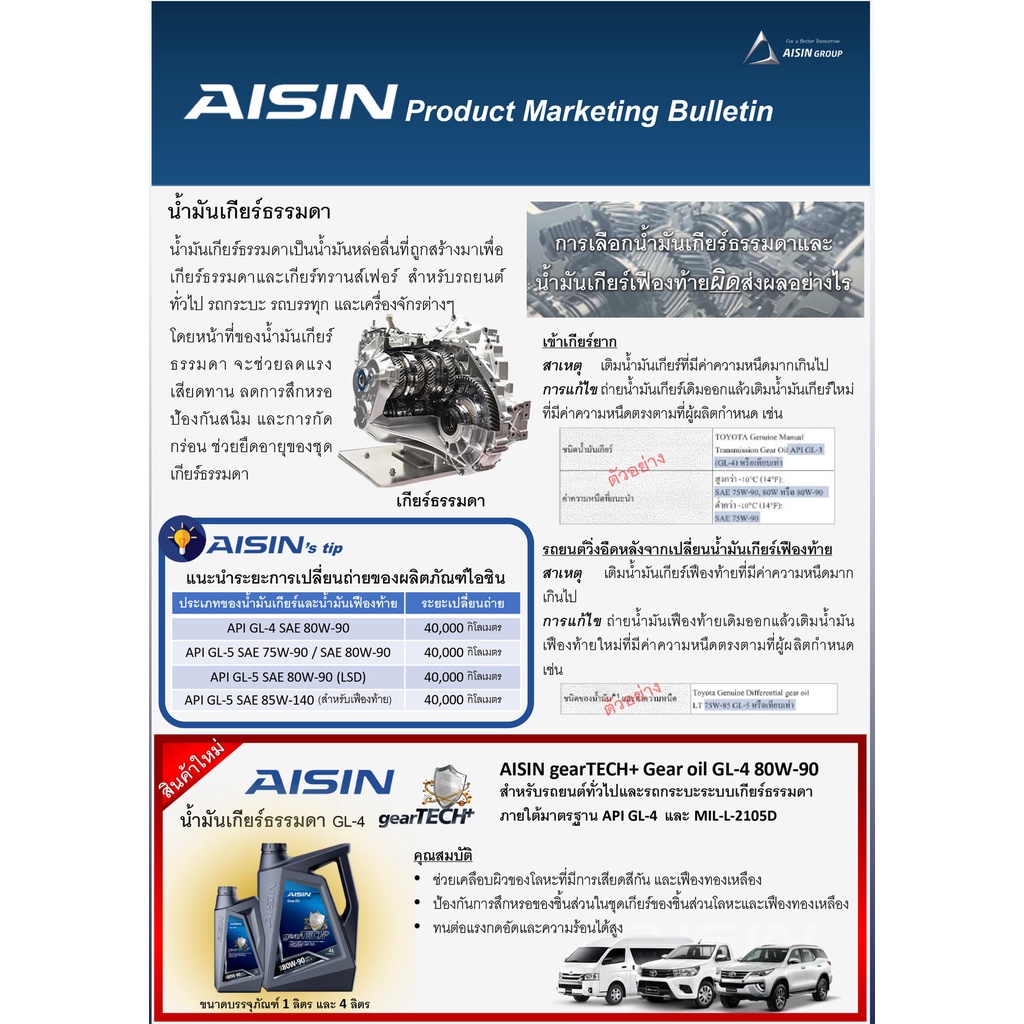 Aisin น้ำมันเกียร์สังเคราะห์ 100% AFW+ / CVT CFEX / DexronVI AFW-VI / น้ำมันเกียร์ GL5 75w-90 80w-90