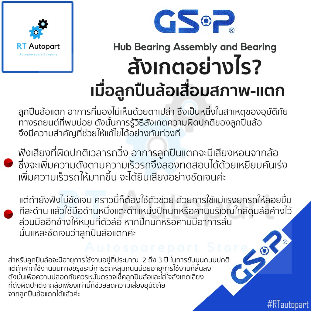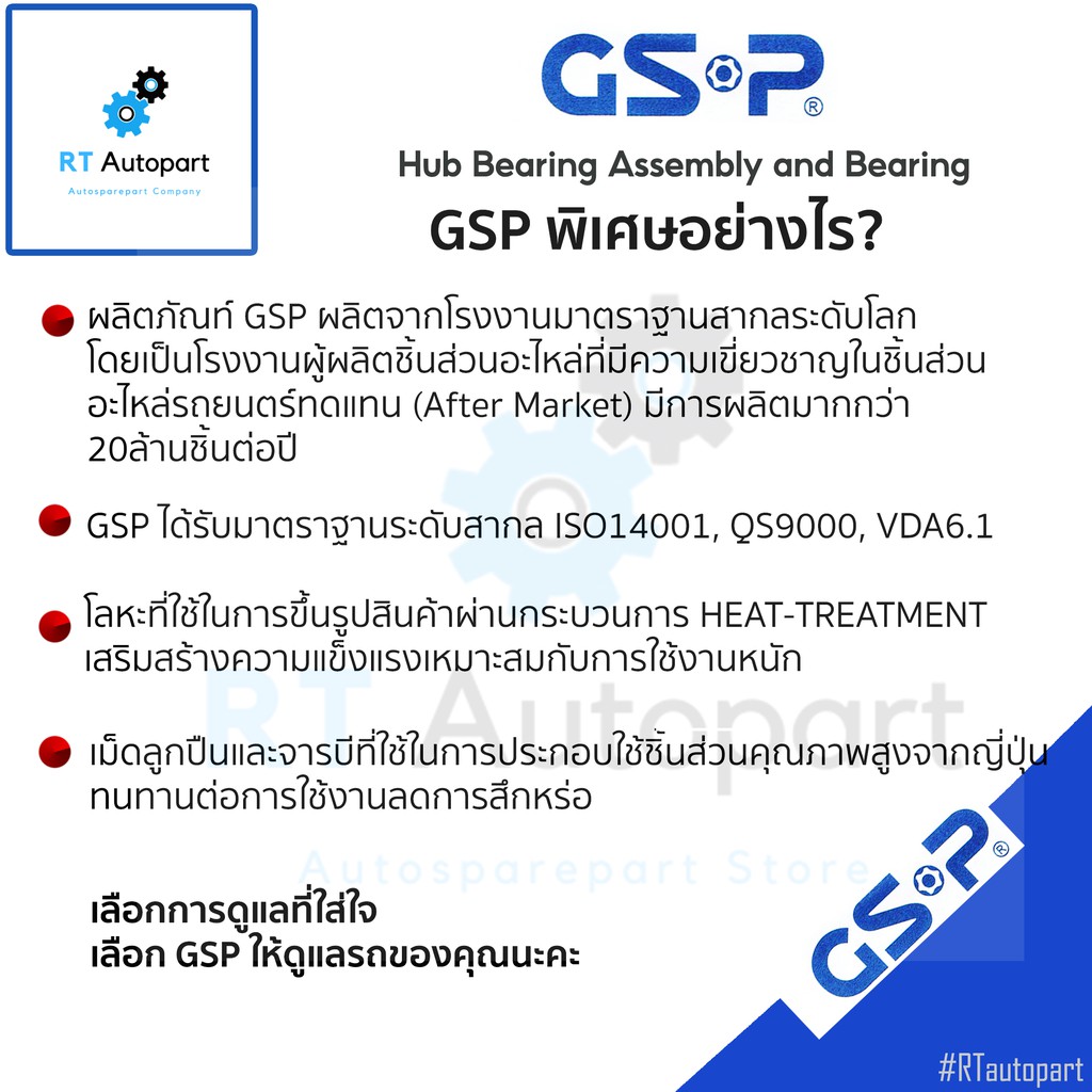 GSP ลูกปืนล้อหลัง Honda Accord G9 ปี13-18 (มี ABS) / ลูกปืนล้อ แอคคอร์ด / 9274002 / 9400548