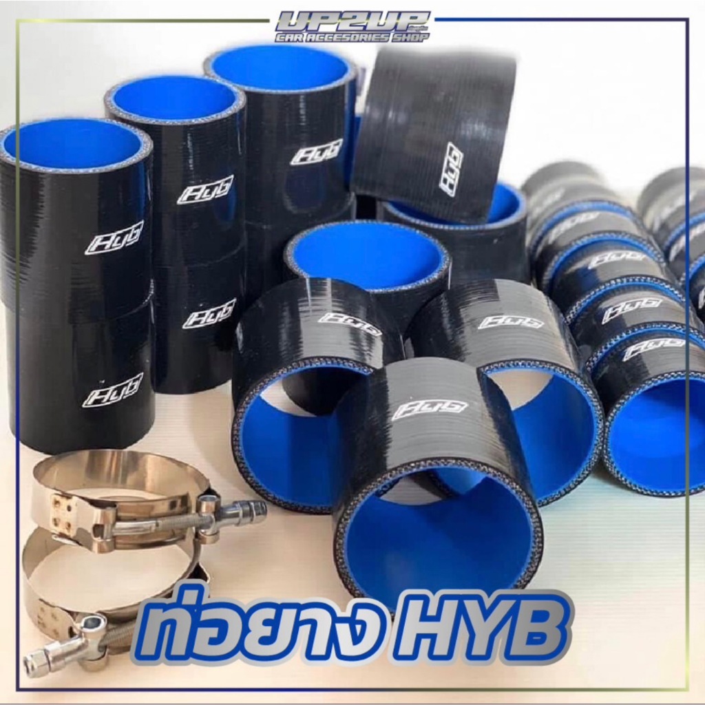 ท่อยางตรง HYB (แท้) ท่อยางอินเตอร์แบบ"ยาวพิเศษ" ซิลิโคนหนา 4 ชั้น สีดำและสีน้ำเงิน สำหรับรถยนต์ #UP2UP #ท่อยางซิลิโคน