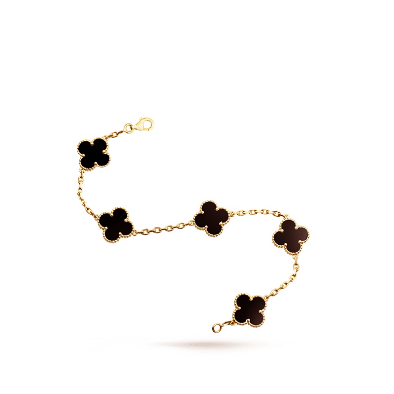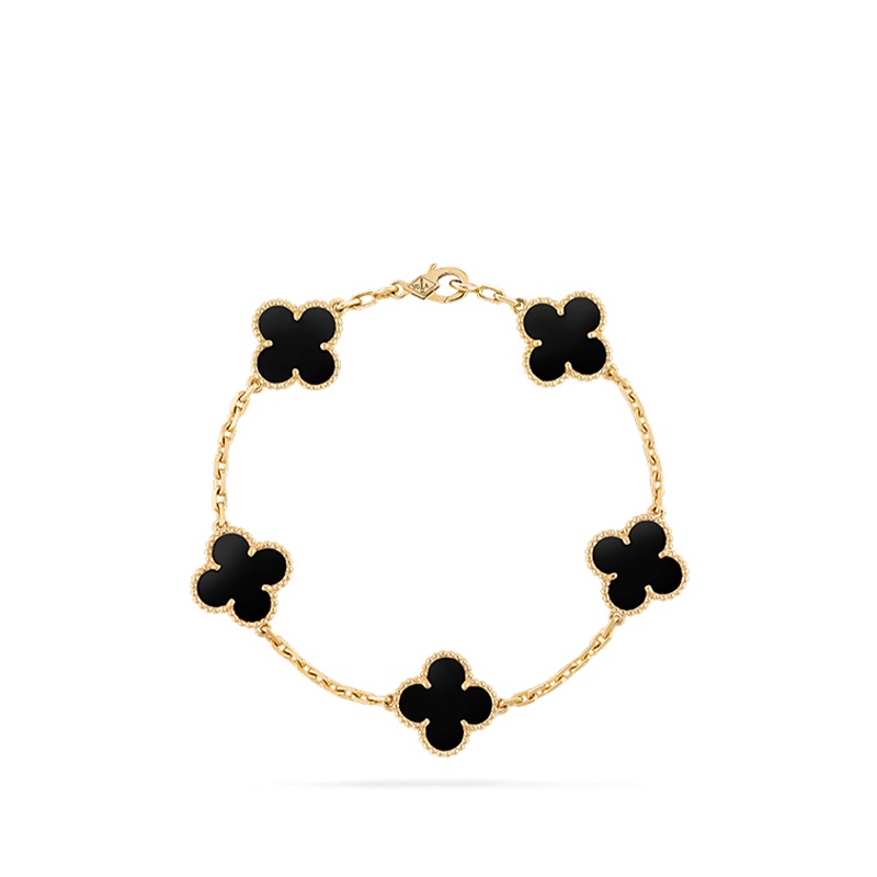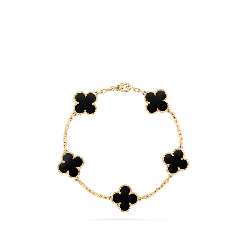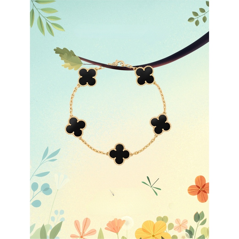 ของแท้ 100% Alhambra สี่ใบ โชคดี สีเหลือง ทอง นิล ห้าดอก สร้อยข้อมือ ของขวัญแฟนสาว
