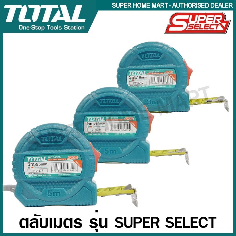 Total ตลับเมตร 3 เมตร / 5 เมตร / 8 เมตร รุ่น Super Select รุ่น TMT34316 / TMT34519 / TMT34525 / TMT34825 ( Tape Rule )